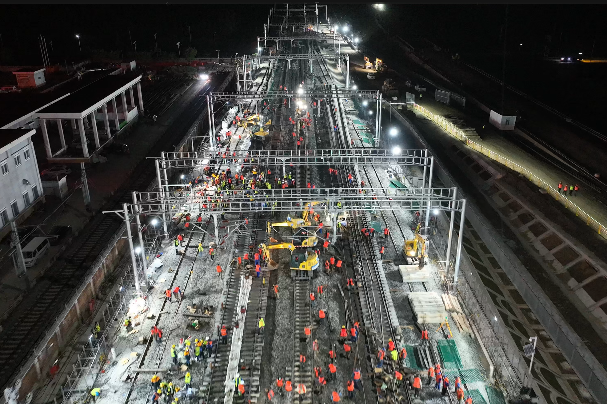 经过880名建设者近9小时的鏖战,10月25日,中国中铁旗下中铁二局参建的北京至香港高速铁路雄安新区至商丘段(简称京港高铁雄商段)衡水枢纽工程第二组42号道岔精准插入既有石家庄至济南客运专线(简称石济客专)衡水北站下行线,京港高铁雄商段与石济客专实现互通。