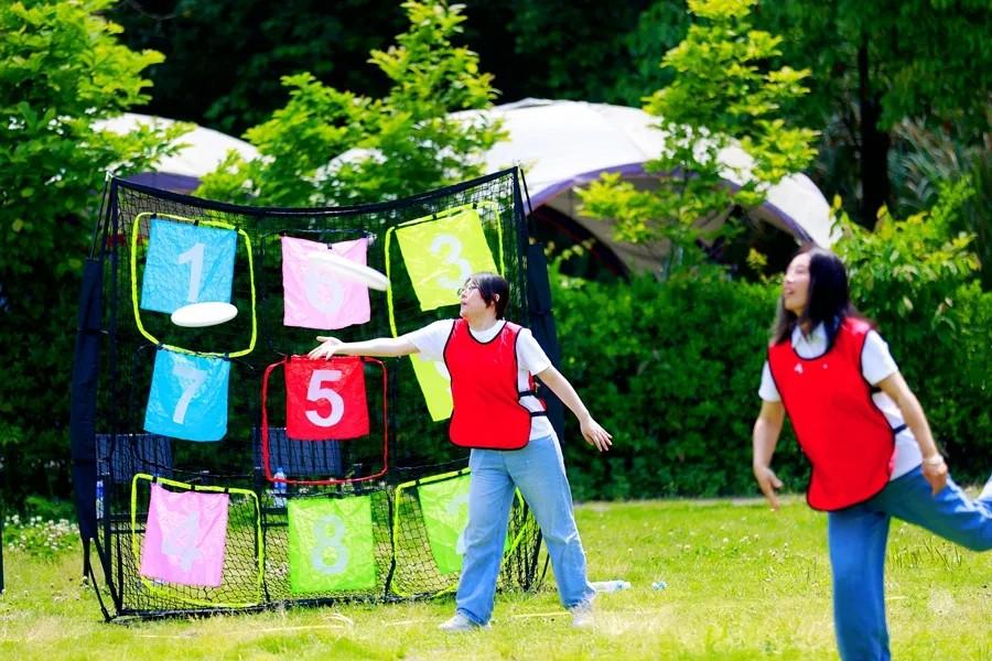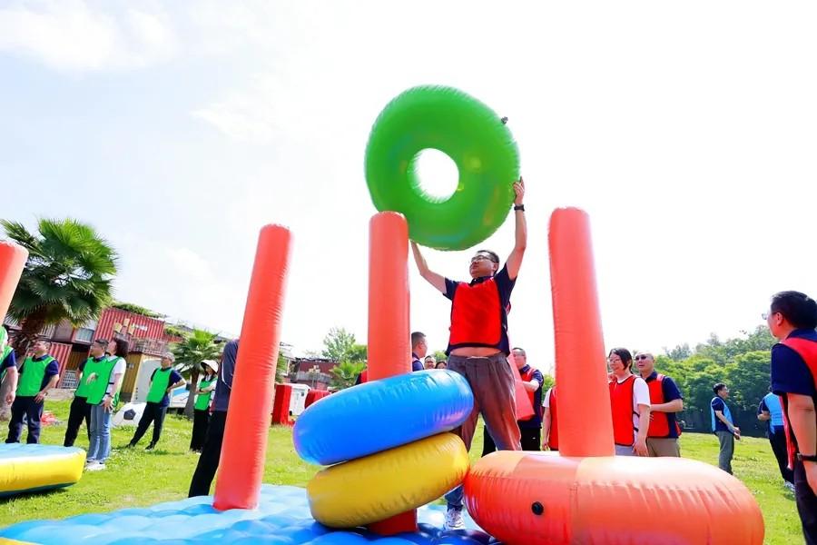 这次拓展活动精心设计了3个趣味项目和1个主题项目,参赛队员分为6个小团队,每个小组都各自设计自己的队名、口号、并进行了团队风采展示。在风采展示之后各小组以团队竞赛的方式先后进行了旁敲侧击、弹力足球、团队罗汉塔、极限飞盘等拓展项目。一系列团队拓展项目,考验着队员们的智慧和团队凝聚力,大家在活动中,踊跃参与,你追我赶,加强了横向交流。