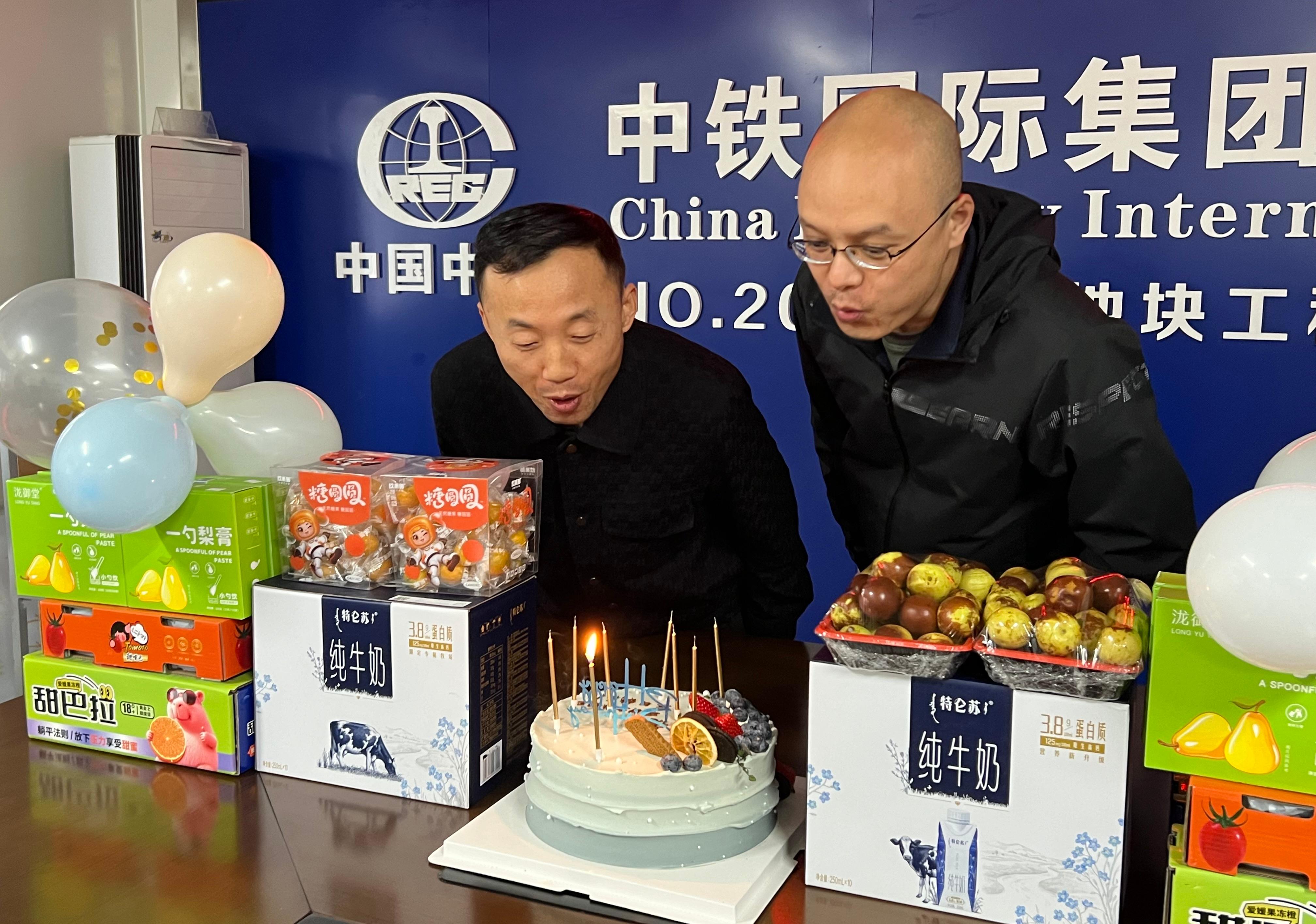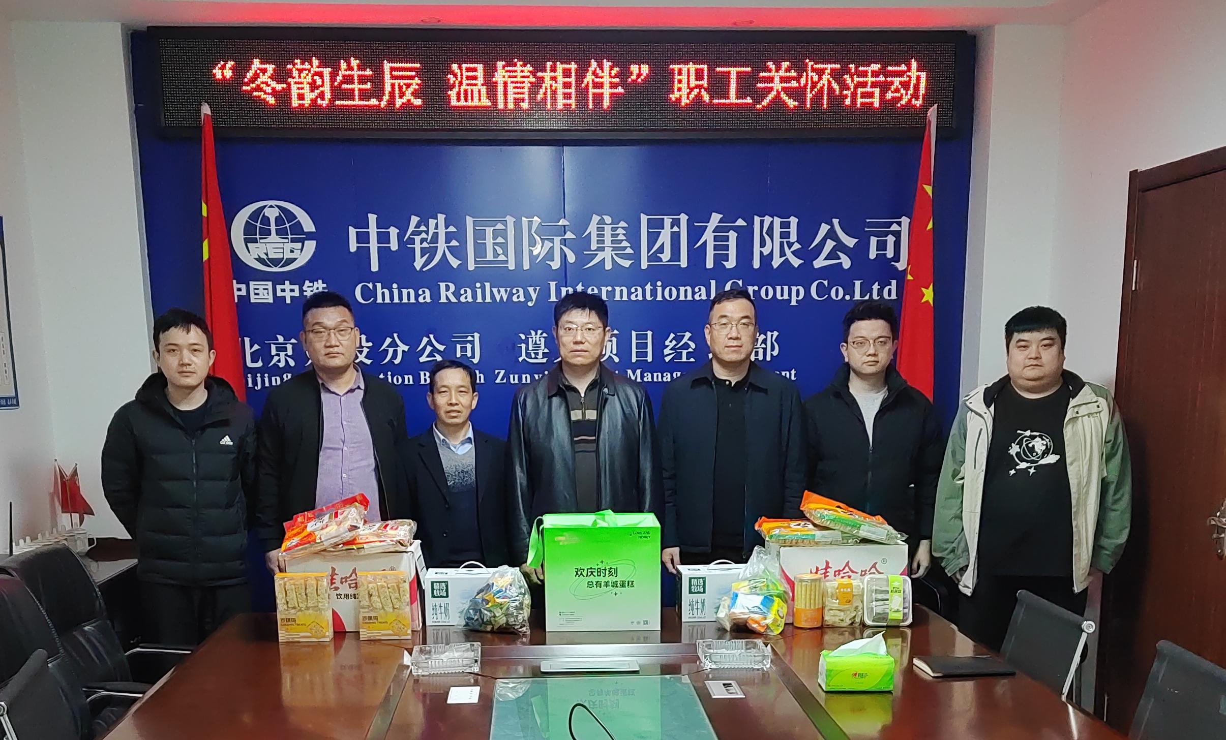 分公司主要负责人赴遵义项目部集体生日会活动现场,为职工发放蛋糕、牛奶等慰问物资并代表公司党委向坚守在一线的职工表示由衷的感谢,叮嘱职工确保工程如期推进的同时,真心将施工安全与个人防寒保暖放在首位,科学合理安排工作任务,有效防控生产安全事故的发生,切实保障职工的生命安全和身体健康。