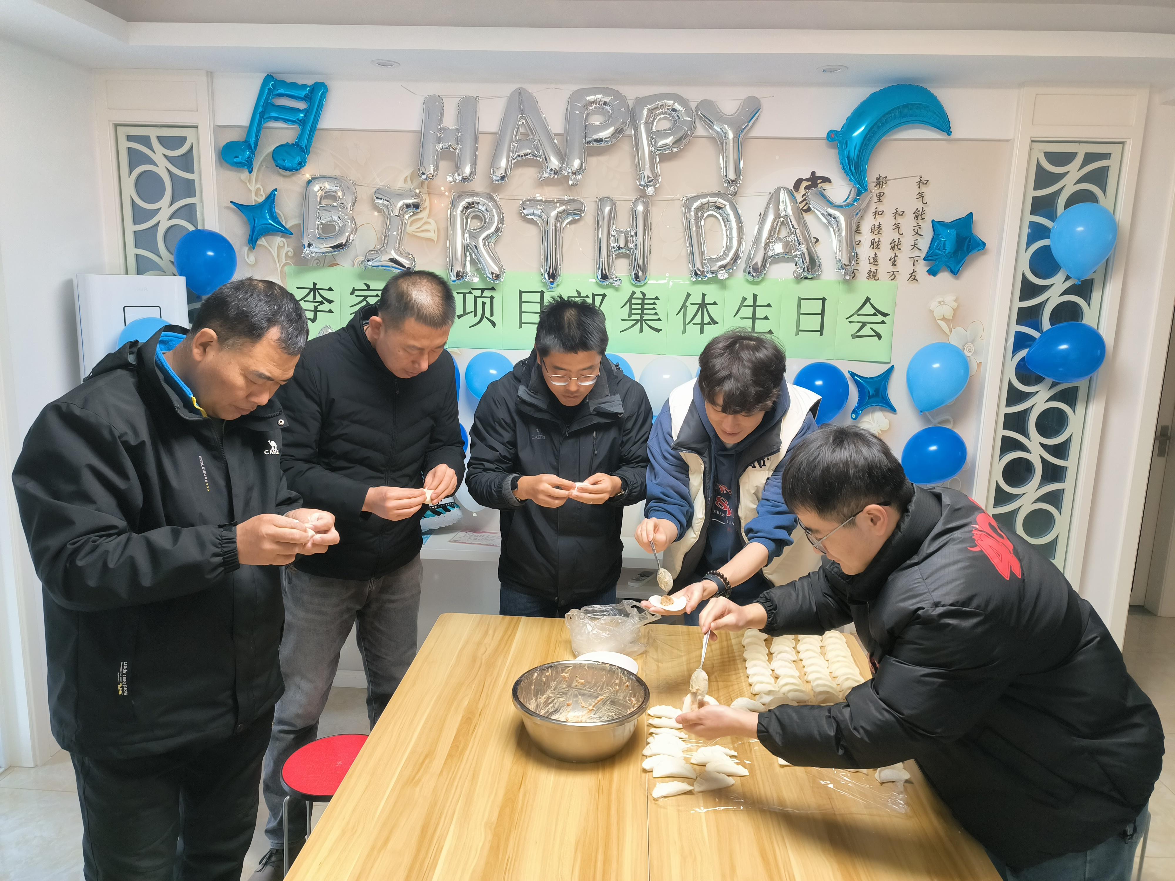 南京李家岗项目部以聚餐的形式为坚守在工作岗位上的员工们庆生。大家一起唱生日歌,吹蜡烛,包饺子,切蛋糕,互相献上生日祝福。希望大家在繁忙的工作中,感受到项目部这个大家庭最诚挚的关怀!