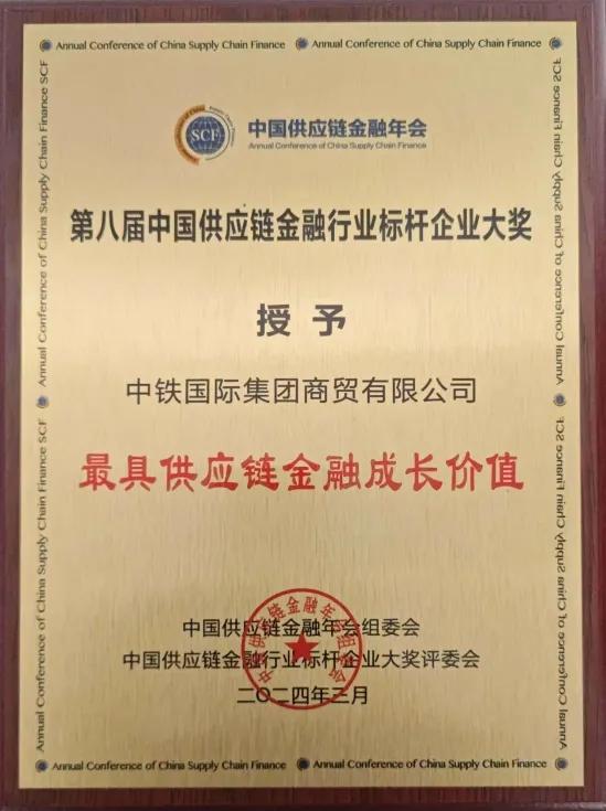 在刚刚结束的第8届中国供应链金融年会暨第八届中国供应链金融行业标杆企业大奖评选活动中,中铁国际商贸公司荣获“最具供应链金融成长价值”奖项。