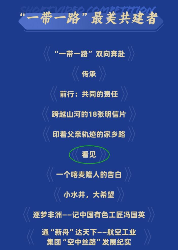 由中国公共外交协会、国务院国资委新闻中心、环球网联合主办的第五届“一带一路”百国印记短视频大赛获奖榜单出炉。中国中铁国际集团拍摄制作的讲述“一带一路”十年间在共建国发生的四个代表性故事《看见》获得本届大赛“最美共建者”奖项,实现在该大奖赛上四连冠的好成绩!