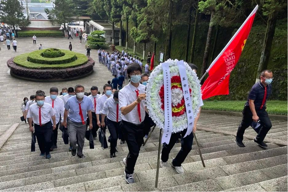 ▲在井冈山革命烈士陵园敬献花圈