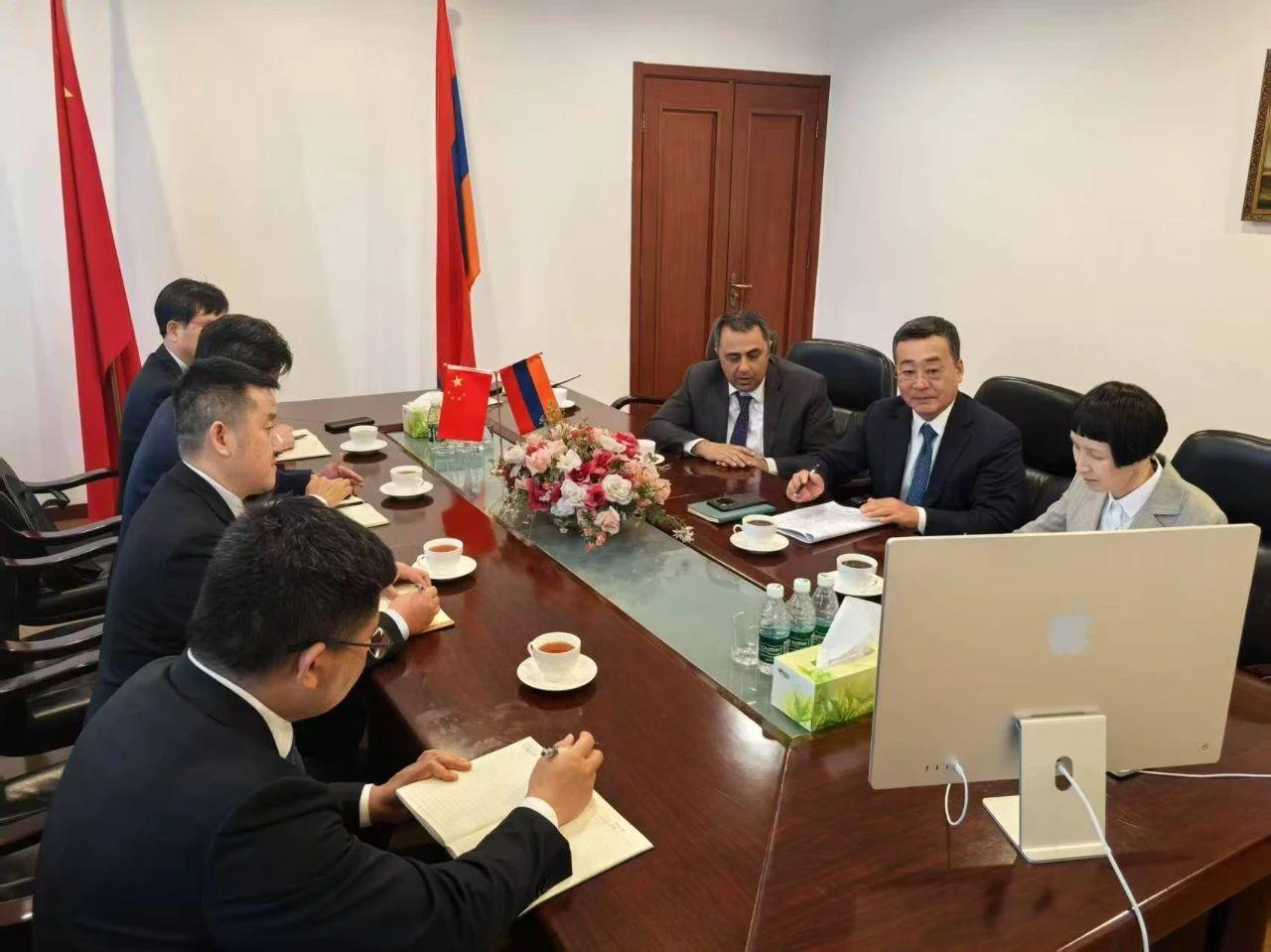4月10日下午,中铁国际董事长毕彦春与到访的亚美尼亚驻中国特命全权大使瓦赫·格沃尔克扬举行会谈,就企业参与亚美尼亚有关交通基础设施建设深入交流,并达成广泛共识。