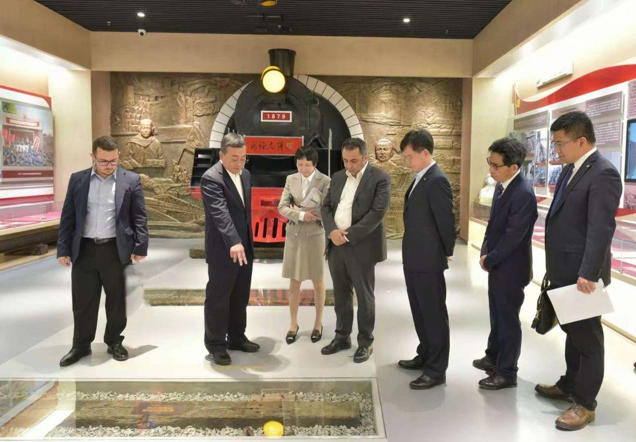 会谈前,毕彦春陪同瓦赫·格沃尔克扬大使参观中国中铁“开路先锋”文化展览馆。