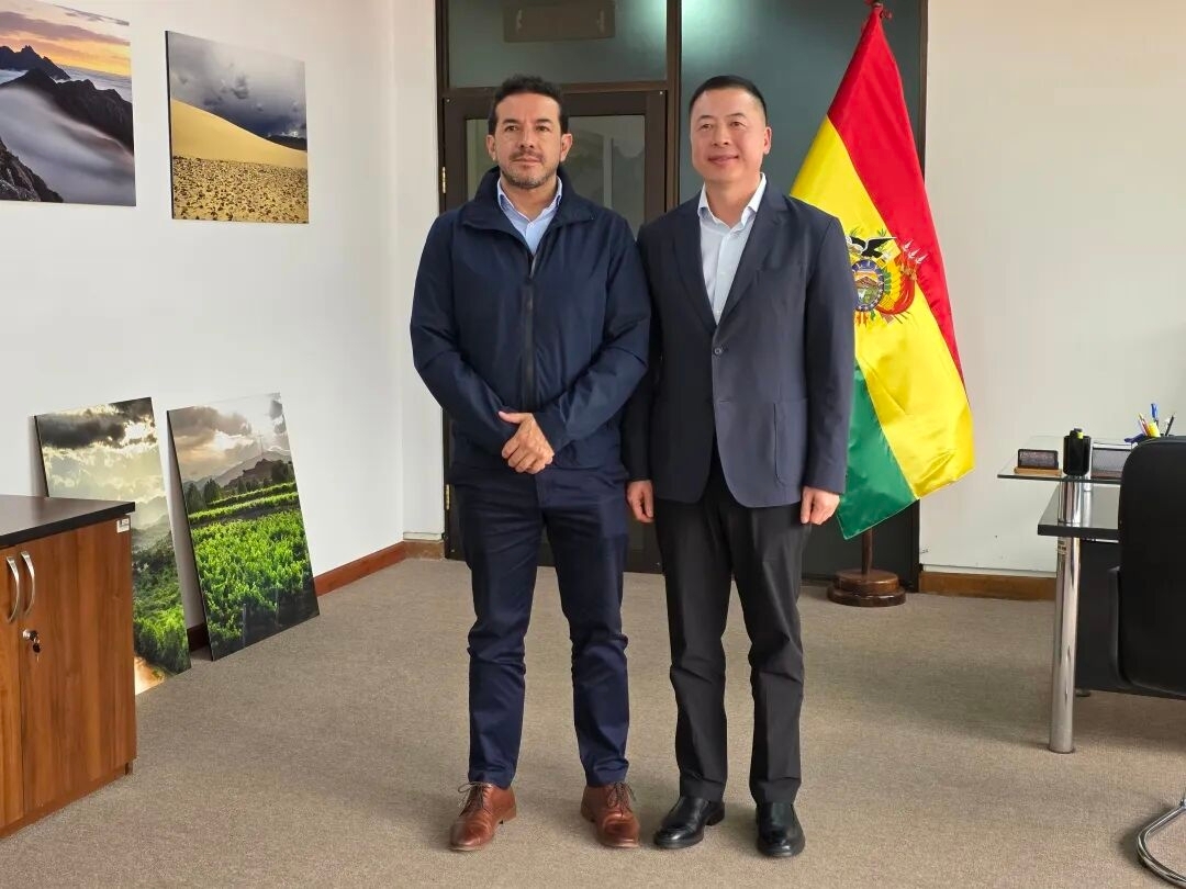 3月5日,赵金祥拜会中国驻玻利维亚大使王亮。赵金祥对大使馆长期以来给予企业在玻利维亚国别发展的指导与支持表示感谢,报告了重点项目进展情况,表示中铁国际将充分发挥中国中铁在基础设施建设领域的全产业链优势,协同相关单位推进重点项目稳步实施,建造更多标志性工程及小而美项目,为深化中玻务实合作贡献力量。王亮大使对中铁国际深度参与玻利维亚基础设施建设助力属地经济社会发展、作为在玻中资企业商会会长单位积极服务中玻经贸合作所取得的成绩表示赞赏,希望中铁国际积极稳妥实施重点项目,建造品质工程,做好风险防控,树立良好形象,并持续深入履行好商会会长单位职责,为中资企业在玻发展以及深化中玻经贸合作作出更大贡献。使馆负责经济事务的参赞刘晓峰参加活动。