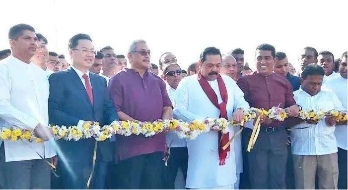 斯里兰卡总统、总理及中国驻斯大使共同为项目通车剪彩