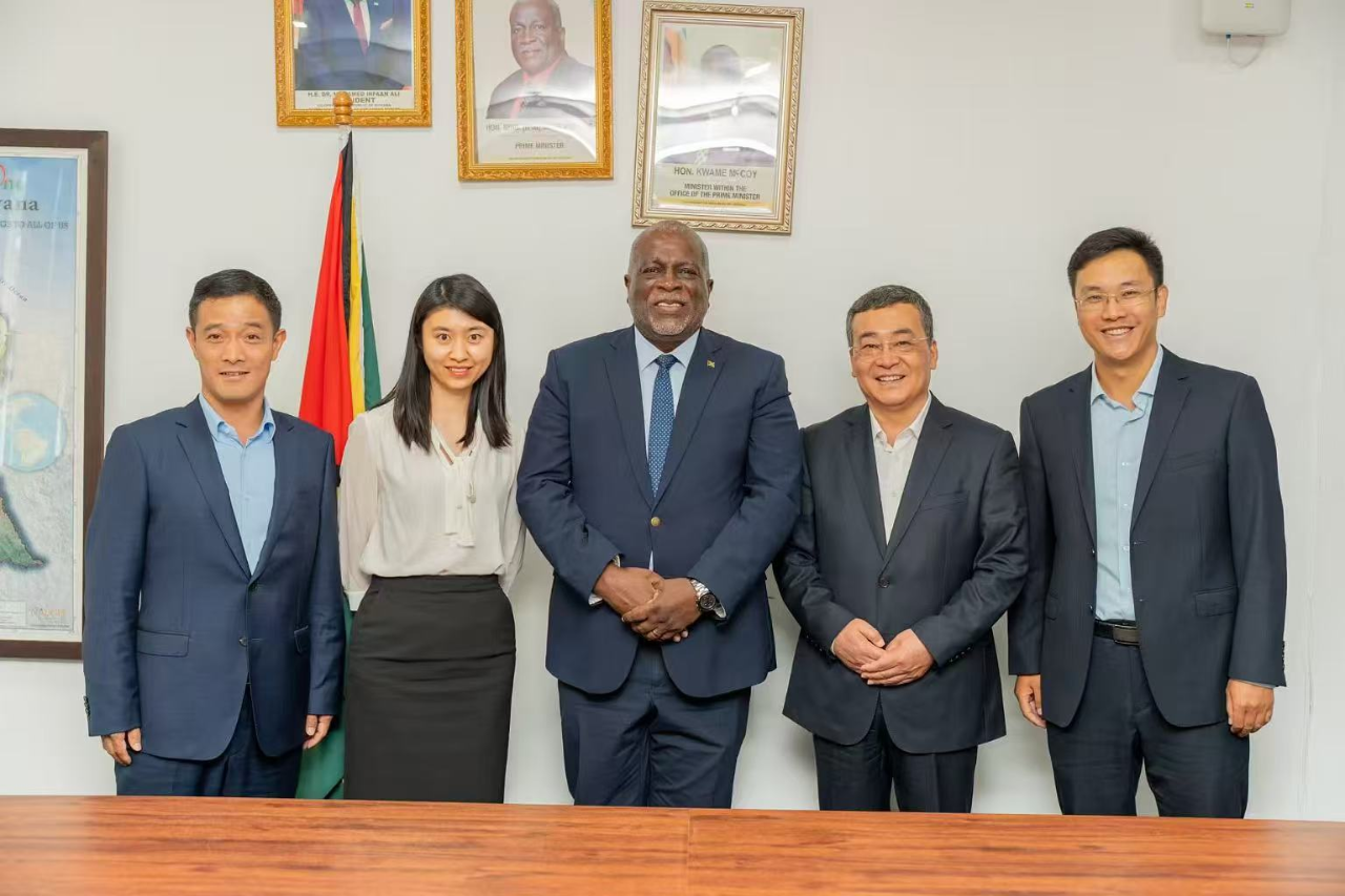 Prime Minister, Brigadier (Ret'd), the Honourable Mark Phillips, who is currently performing the functions of President, met with Mr Bi YunChun, Chair of China Railway International Group Co., Ltd. (CRIG), at the Office of the Prime Minister on Camp Street this afternoon. During the meeting, the Chair briefed Prime Minister Phillips on CRIG's operations, company profile, and its interest in Guyana.