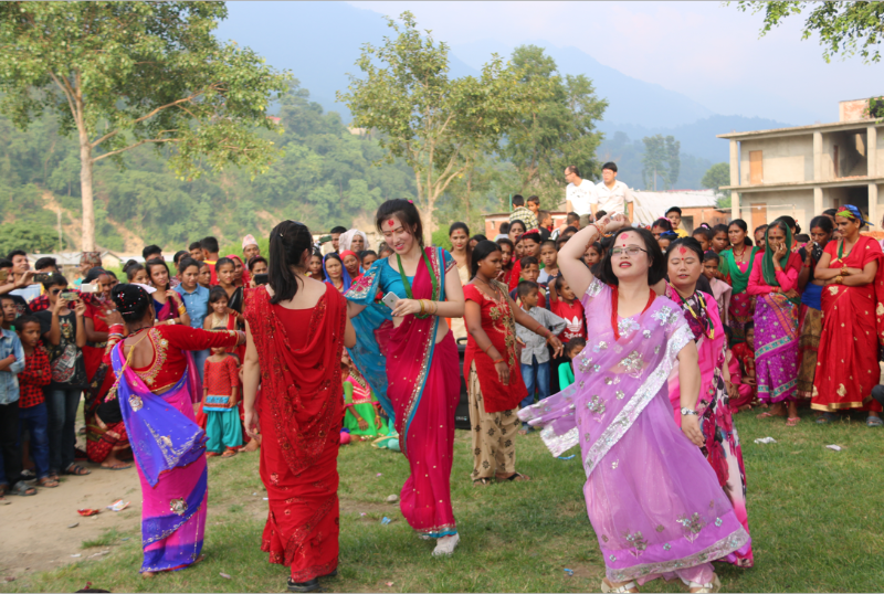 Female Chinese staffs of Project Management Unit dances with local ladies on ceremony of Nepal Women’s Day