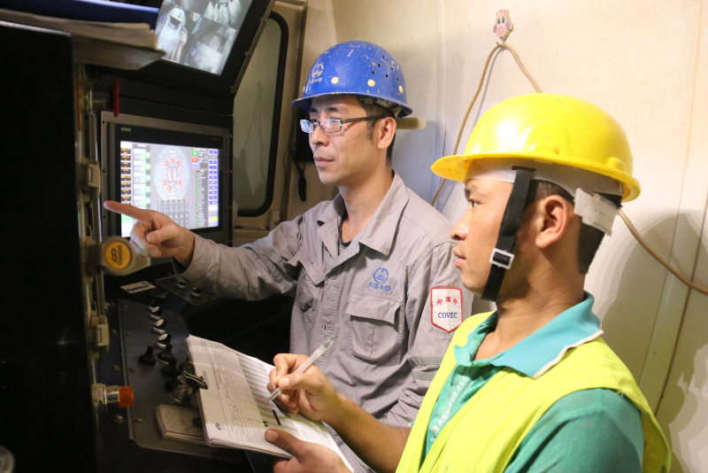 Chinese staffs of Project Management Unit teach Nepal staffs on TBM technology