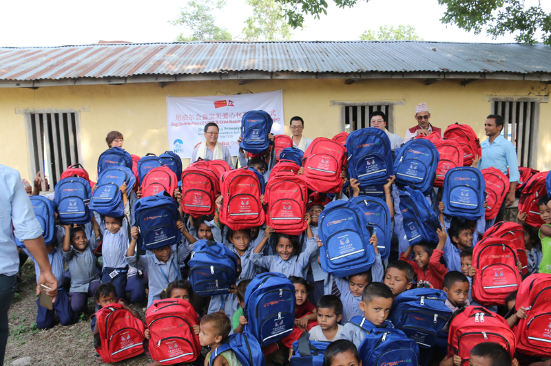 Project Management Unit and China Foundation for Poverty Alleviation donates 780 bags for two schools adjacent to the project