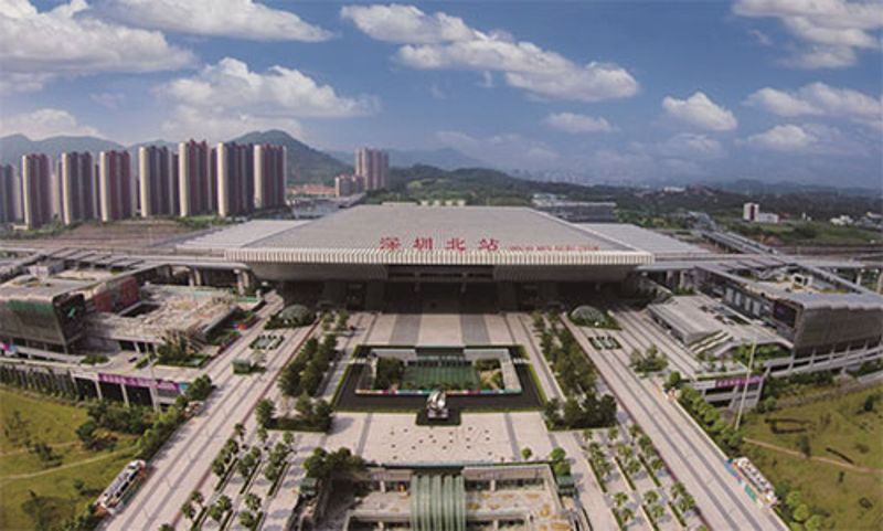 The total investment of Shenzhen North Station Integrated Transportation Hub Project is about 5.85 billion yuan. It is currently the largest integrated transportation hub project under construction in South China and the most important land transportation gateway in Shenzhen. It is in the southwest of Longhua, Bao'an District, Shenzhen. It is 9.3 kilometers away from the city center and covers an area of 122.42 hectares. It is a comprehensive transportation hub project that integrating various transportation methods, which includes national railway lines like Guangzhou-Shenzhen-Hong Kong Passenger Dedicated Line and Xiamen-Shenzhen High-speed Railway, Metro Line 4, 5 & 6, coach, buses, taxis and social vehicles.