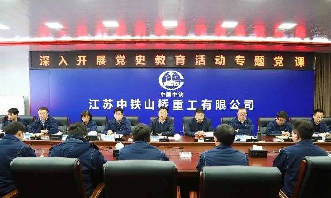 中铁山桥党委副书记,总经理曹东威分别为江苏山桥重工党委、管理中心二支部讲授《学党史 悟思想 办实事 开新局》专题党课,从五个方面部署了中铁山桥党史学习教育重点工作,对党史学习教育提出四点要求,要加强组织领导,中铁山桥主要领导同志要率先垂范,切实把党中央部署和要求落到实处;要树立正确党史观,加强思想引导和理论辨析;要开展好“我为群众办实事”实践活动,切实为群众办实事、解难题,把学习成效转化为工作动力和成效;要注重方式方法创新,让红色基因、革命薪火代代传承,高标准高质量完成学习教育各项任务。