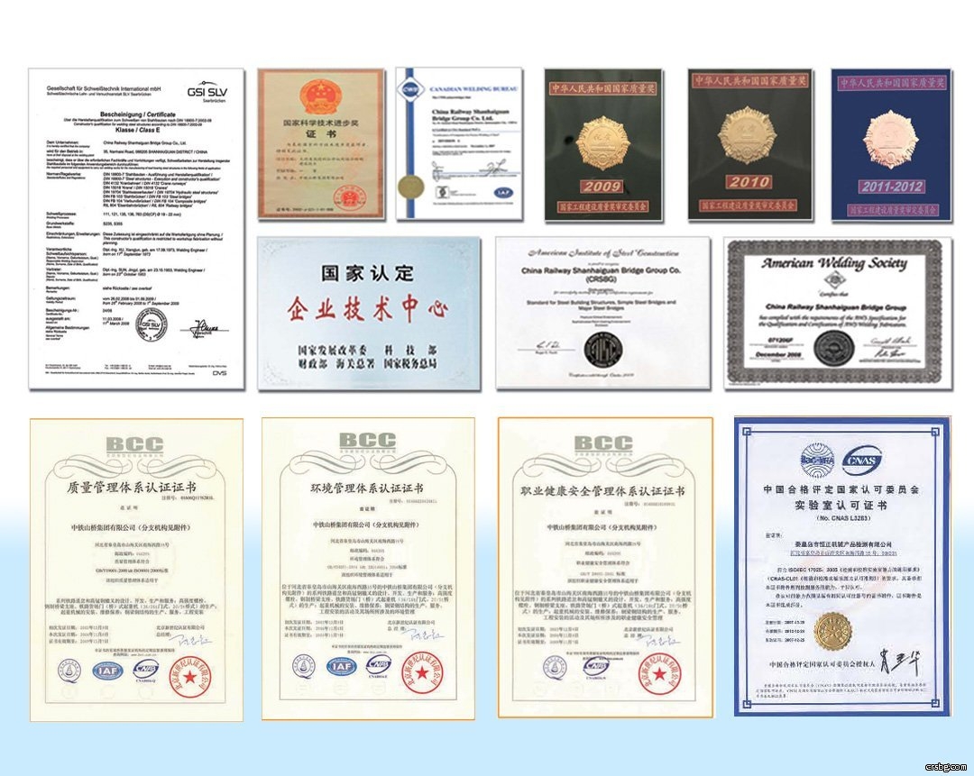 中铁山桥被列为国家认定企业技术中心、中国铁道器材研究发展基地,建有博士后科研工作站。拥有钢结构工程专业承包一级资质、钢结构制造特级资质和建筑行业总承包二级资质。通过了ISO9001质量体系认证、ISO14001环境管理体系认证、GB/T28001职业健康安全管理体系认证、英国UKAS认证、美国钢结构认证、AWS焊接认证、AAR道岔认证、欧盟TSI道岔认证、德国焊接认证、加拿大焊接认证和北欧铁路合格供应商认证。