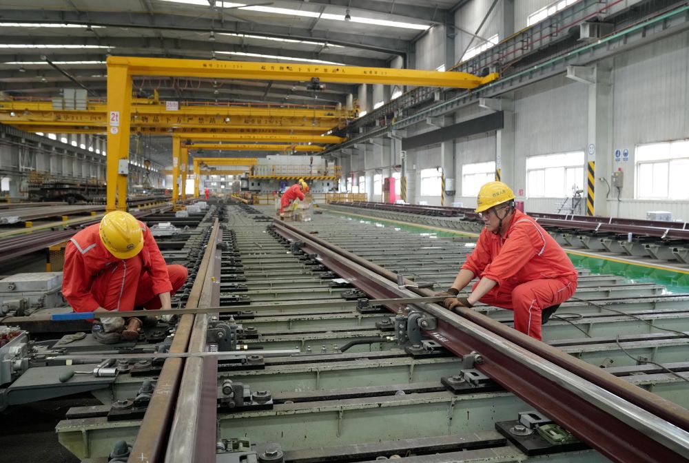 近日,随着国内一些重要铁路及地铁项目有序推进,承接铁路道岔生产任务的河北省秦皇岛市山海关区中铁山桥集团有限公司生产车间内一派繁忙,工人们正保质保量加紧生产,助力中国铁路交通建设。中铁山桥始创于1894年,生产的道岔产品远销30多个国家和地区。
