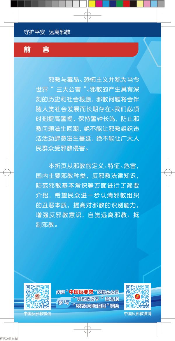 【守护平安 远离邪教】“反邪教警示教育进企业”宣传材料(一)