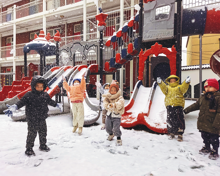 近日,中铁六局信达置业公司太原幼儿园披上银装,在老师的引导下,孩子们玩雪并感知自然,变寒冷雪日为生动课堂。 马星星 摄