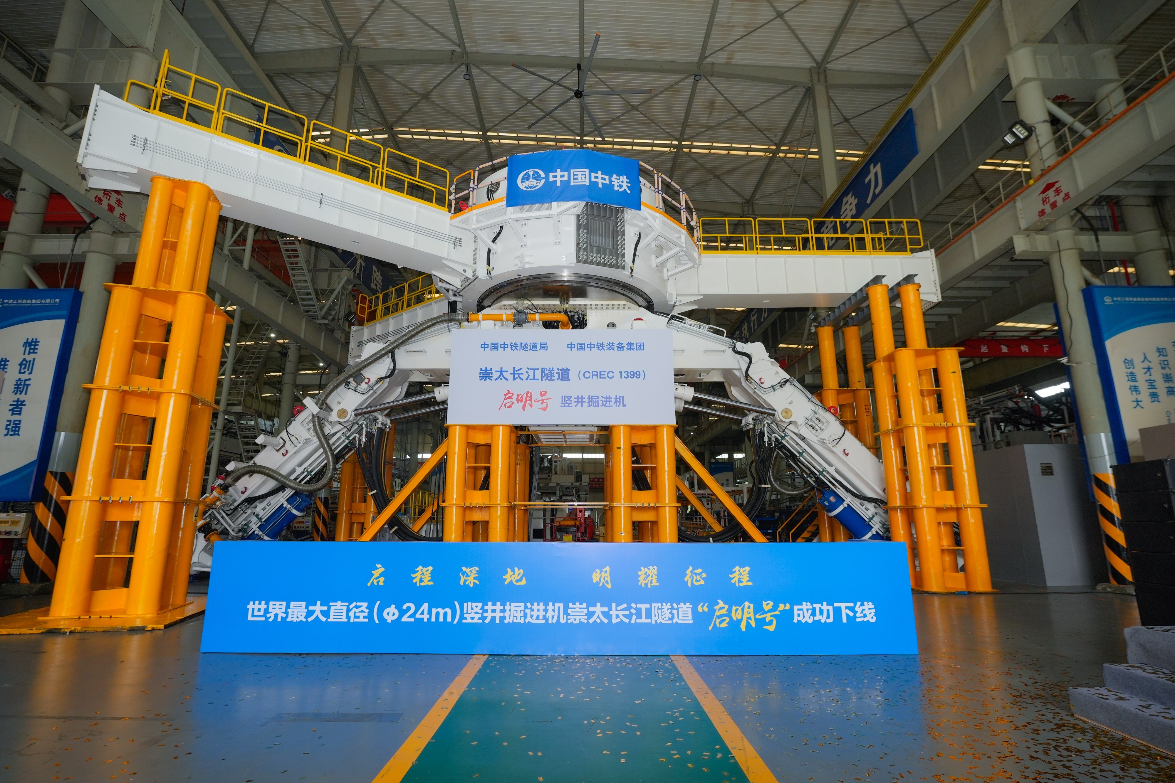 9月26日,中国中铁旗下中铁隧道局与中铁工业联合研制的世界最大直径竖井掘进机“启明号”在郑州下线,将应用于沪渝蓉高铁崇太长江隧道2号竖井施工。