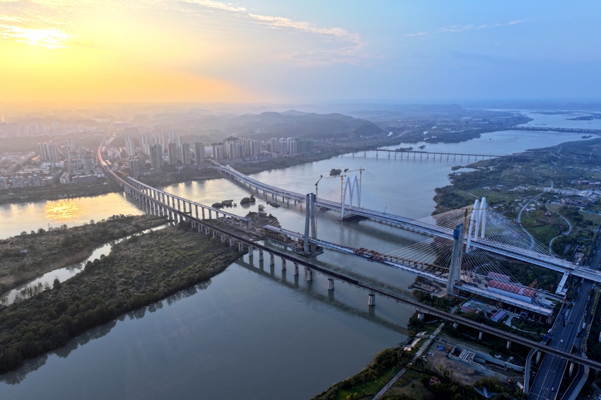 10月14日,成都至达州至万州高速铁路(简称成达万高铁)全线控制性工程遂宁涪江特大桥合龙。