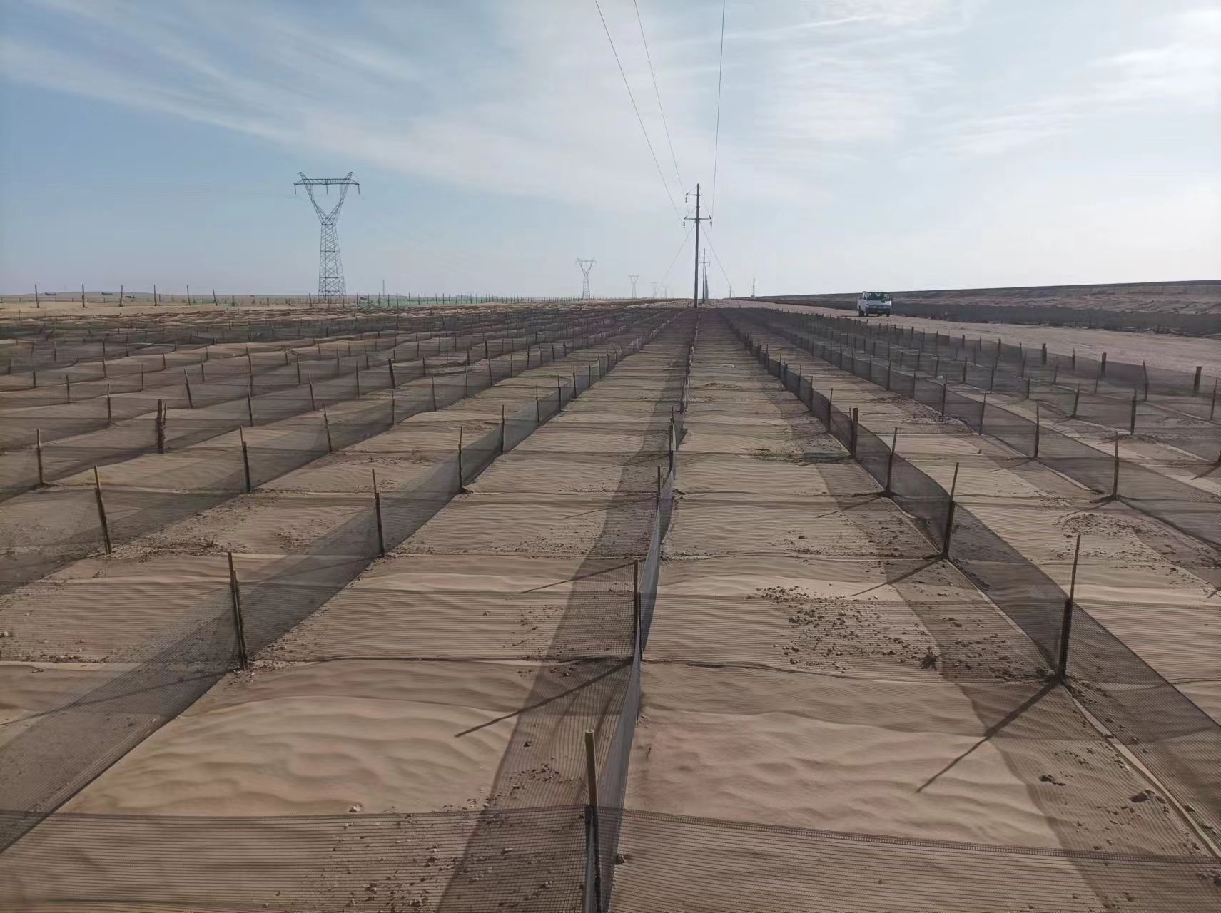 作为临策铁路维管单位的中铁六局呼和浩特公司,近期以“修旧补新、多元防控”为重点内容,启动秋季构建多层次防沙治沙固沙体系的任务。针对部分高沙障因长期风沙冲击出现的倒伏、网片撕裂问题,治沙团队采用“分段拆除+锚栓加固”方案,逐段修复受损高沙障,更换老化锈蚀立柱,确保每一处沙障高度精准保持在2.5米标准值,持续筑牢“阻沙第一道防线”。