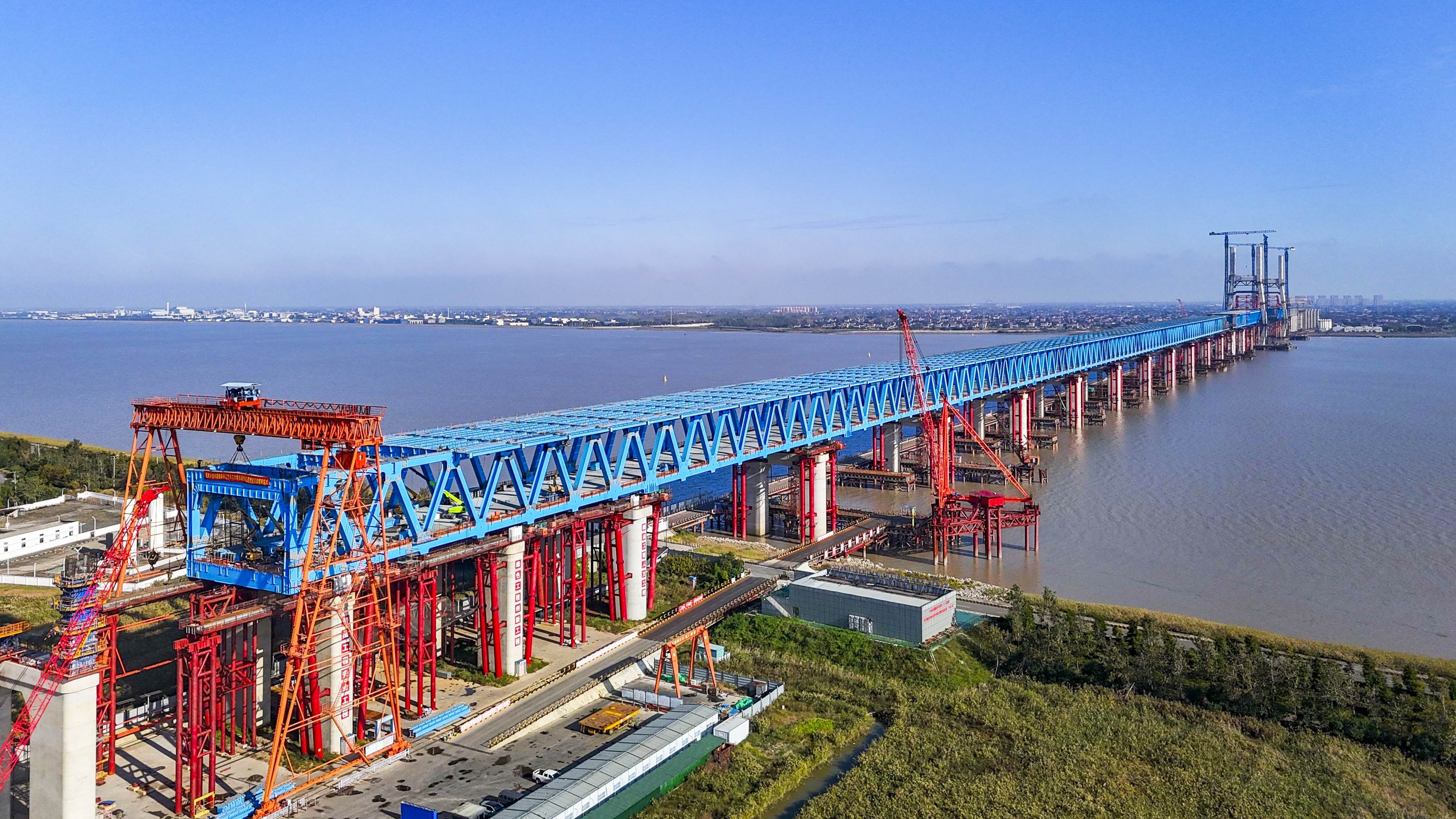 据悉,崇启公铁长江大桥是沪宁合高铁控制性工程,全长4.09公里,横跨长江入海口北支航道,是世界最大跨度双塔双索面公铁两用无砟轨道斜拉桥,也是长江上时速最快的公铁两用斜拉桥。项目建成后,将在上海大都市圈、南京都市圈和合肥都市圈间建起一条快速新通道,对于优化沿长江地区铁路网布局、服务长江经济带协同发展,推动长三角高质量一体化发展等具有重要意义。(崔永兴 王世琪 杨超锋 孟庆虎)