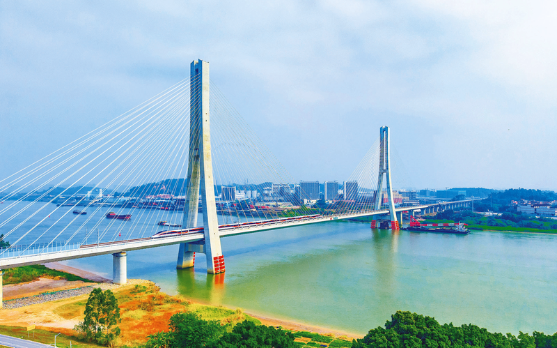 图为动车组通过中铁广州局承建的广湛高铁佛山特大桥跨东平水道斜拉桥。 徐小勇 卢业旺 钟喆 摄影报道