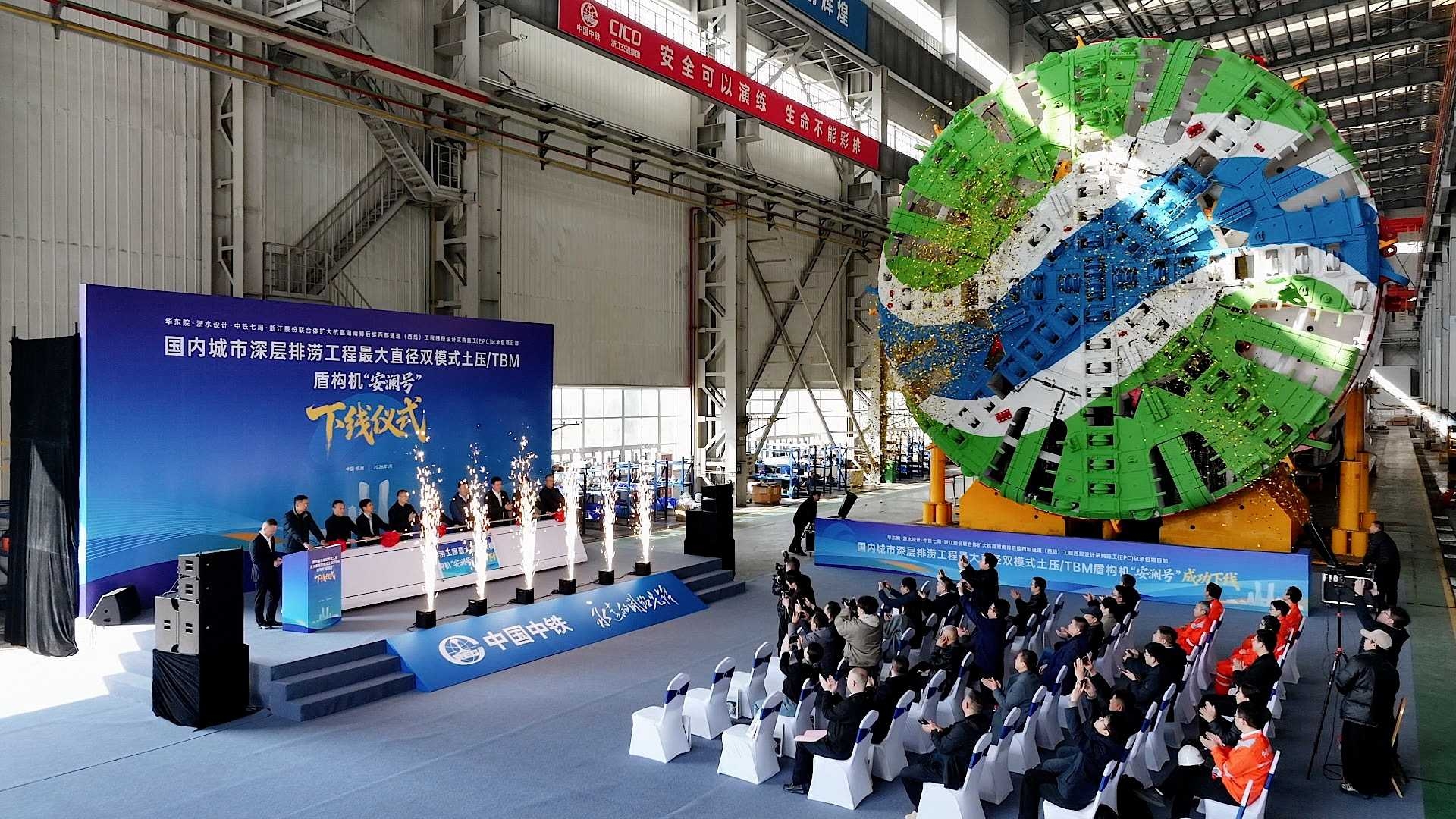 1月16日,中国中铁旗下中铁装备、中铁七局联合研制的超大直径双模式盾构机“安澜号”(中铁1533号)在杭州成功下线。该设备将应用于国家重大水利工程——扩大杭嘉湖南排后续西部通道(西线)工程西段建设。