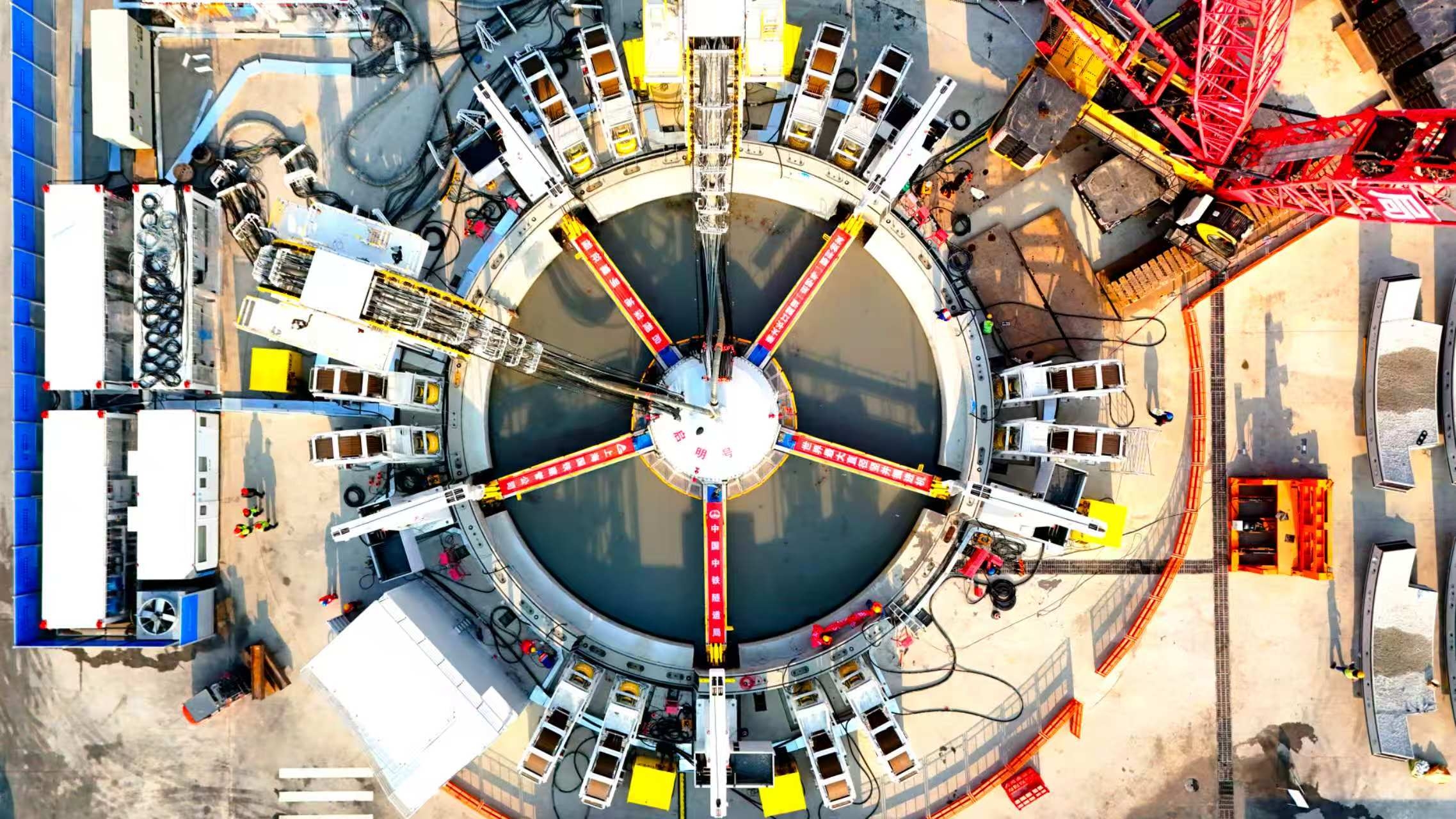 为其量身打造的“启明号”竖井掘进机开挖直径达24米,最大开挖深度可达150米,具备超大断面、超深水下高效开挖能力。该装备集成主驱动、支腿撑紧、截割双臂等系统,具备自主下沉、导向、环控与感知控制能力,搭载多项创新技术,实现“有人值守、无人操作”的智能掘进与衬砌同步拼装。