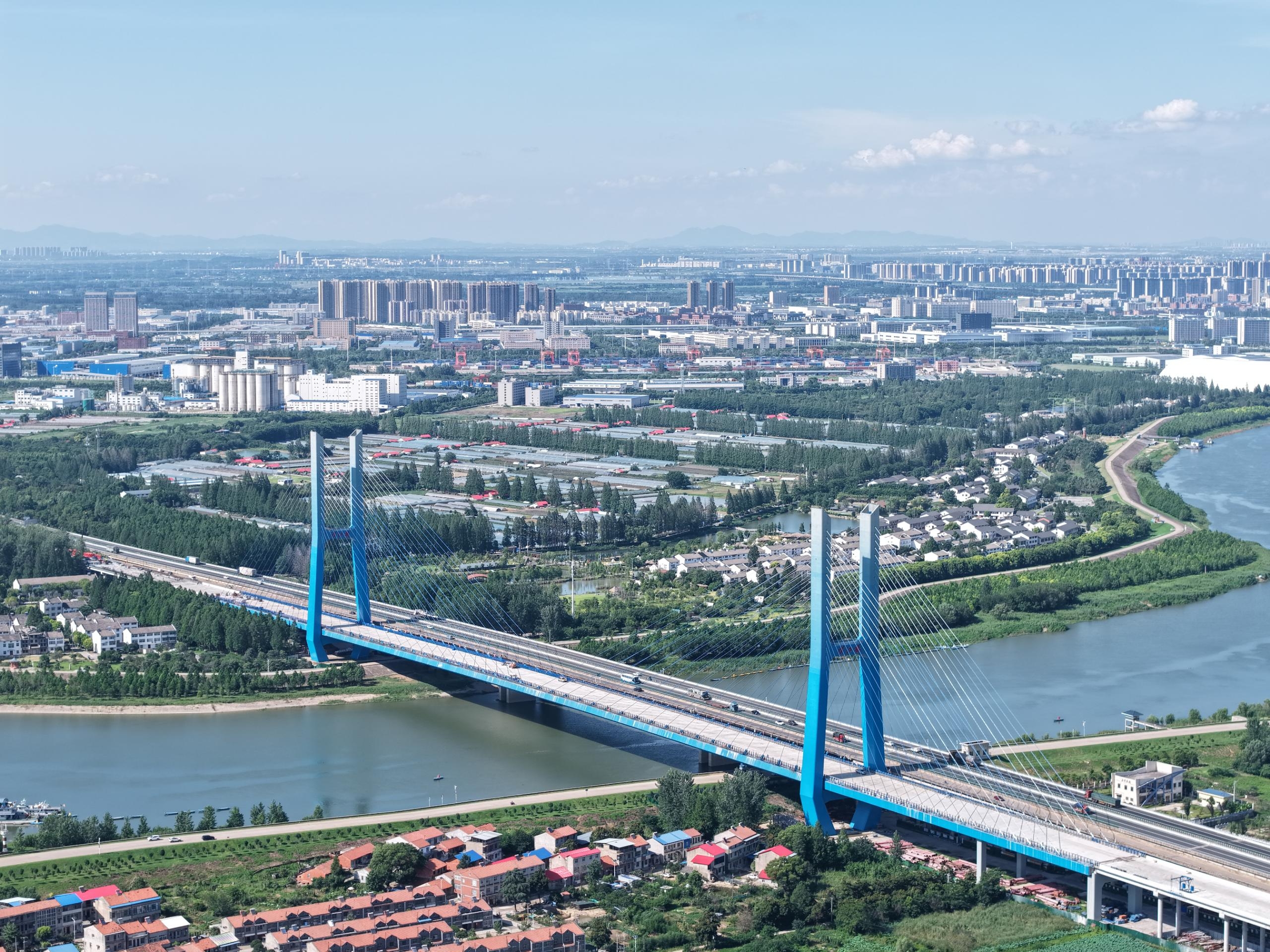 京港澳高速湖北北段北起鄂豫界九里关,途经孝感市大悟、孝昌、孝南三县区,南至武汉西枢纽互通,全长157.79公里,从原来的双向四车道拓展双向八车道,是国家“十四五”交通重点工程,也是湖北省首高速公路改扩建标杆工程。中铁工业主要承接该工程19处型式丰富多样的钢结构桥梁制安任务,总重达2.5万吨。