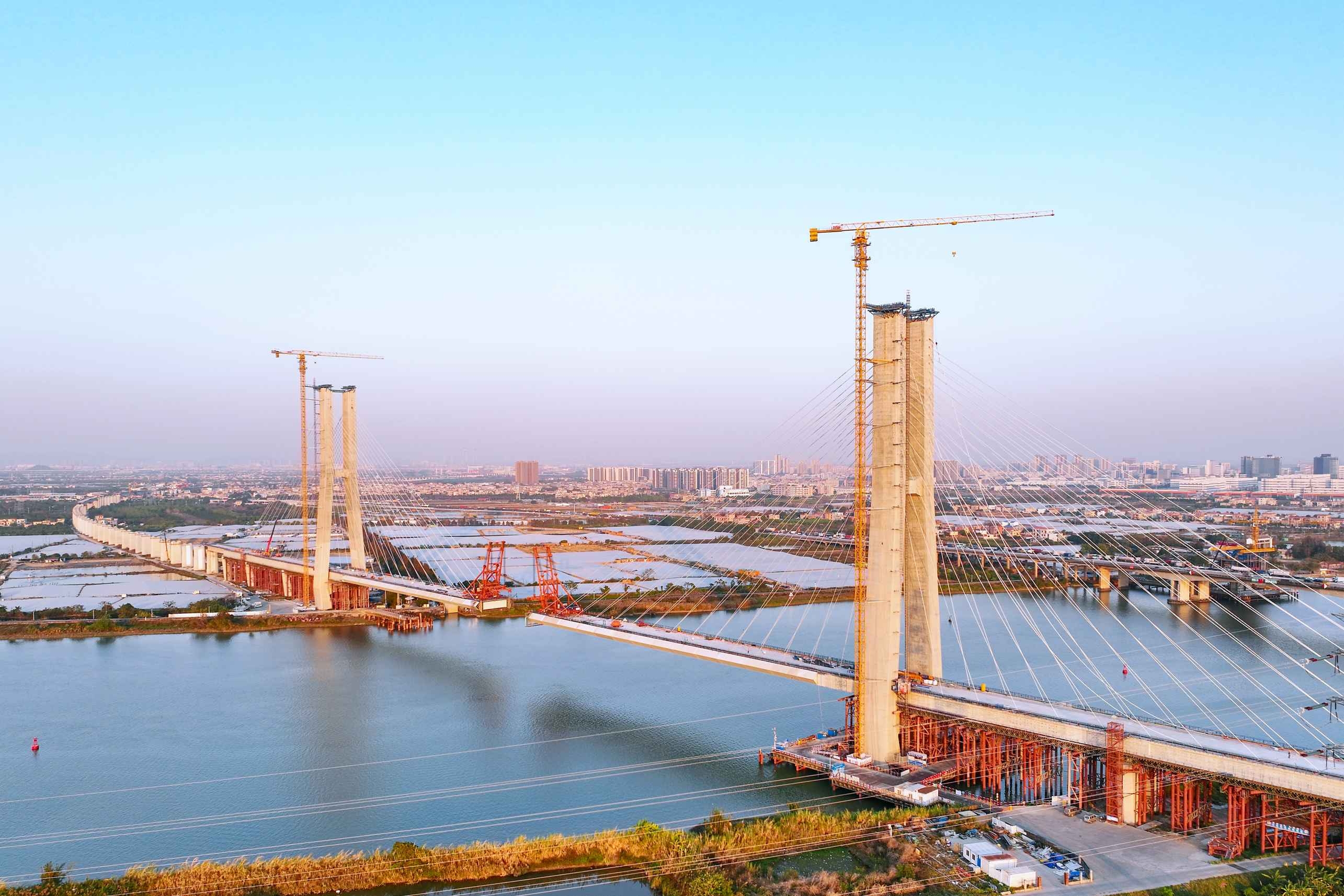 大桥建设具有“一新两大”的特点:一是结构体系新,在高铁桥梁领域首次采用双边主梁组合梁结构;二是跨度规模大,主桥主跨达408米,为当前国内同类型高铁斜拉桥最大跨度;三是智能集成度大,在主塔施工中同步集成智能爬升、智能喷雾养护、智能监测三大系统,技术集成与创新水准均处行业领先。