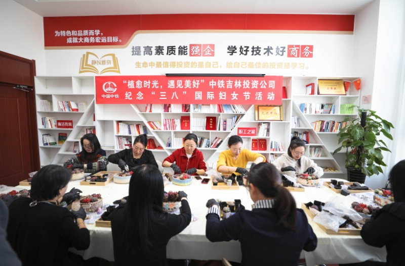 中铁吉林投资公司组织女员工开展“植愈时光,遇见美好”多肉DIY沙龙主题活动,大家化身“园艺设计师”,精心挑选心仪的多肉与装饰材料,在指尖的灵动操作中,将创意与热爱融入每一处细节。(陈爱华、王煜鑫)