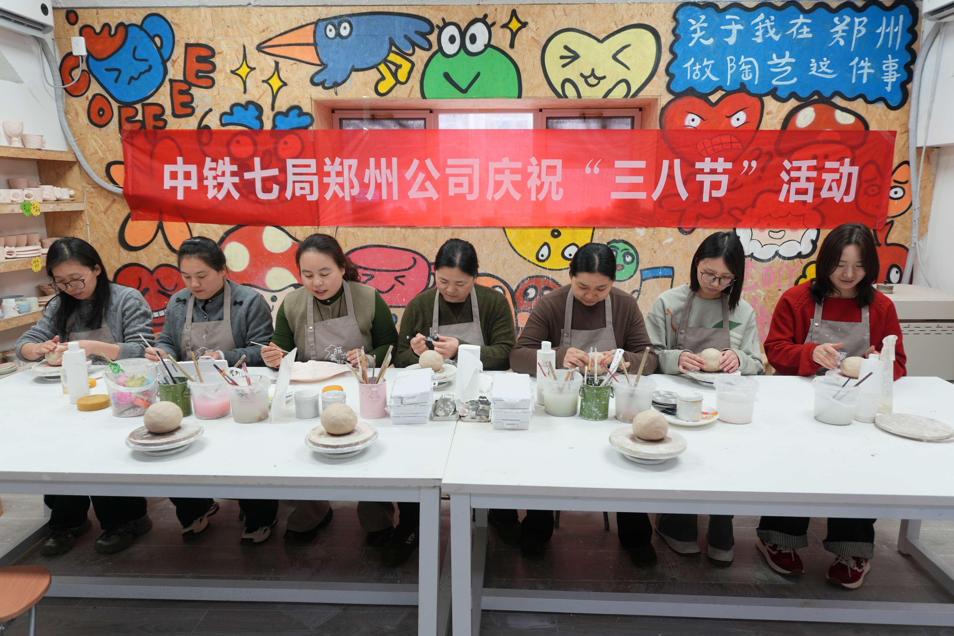 中铁七局郑州公司测绘分公司组织女员工开展“指尖陶韵绽芳华”陶艺体验活动,大家沉浸式体验揉泥、拉坯、塑形等创作,在指尖与陶土的对话中舒缓压力、陶冶情操。(刘佳莉)