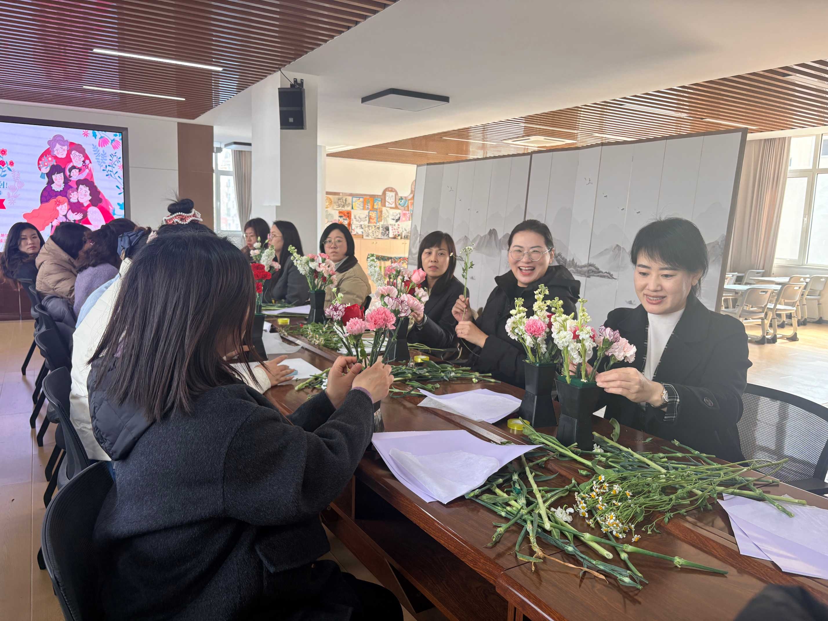 中铁上海局青岛地铁6号线项目联合业主、属地共建单位开展开展“党建暖‘新’绽芳华”主题插花活动,为地铁建设一线女员工送去节日关怀与温暖。(顾美娟)