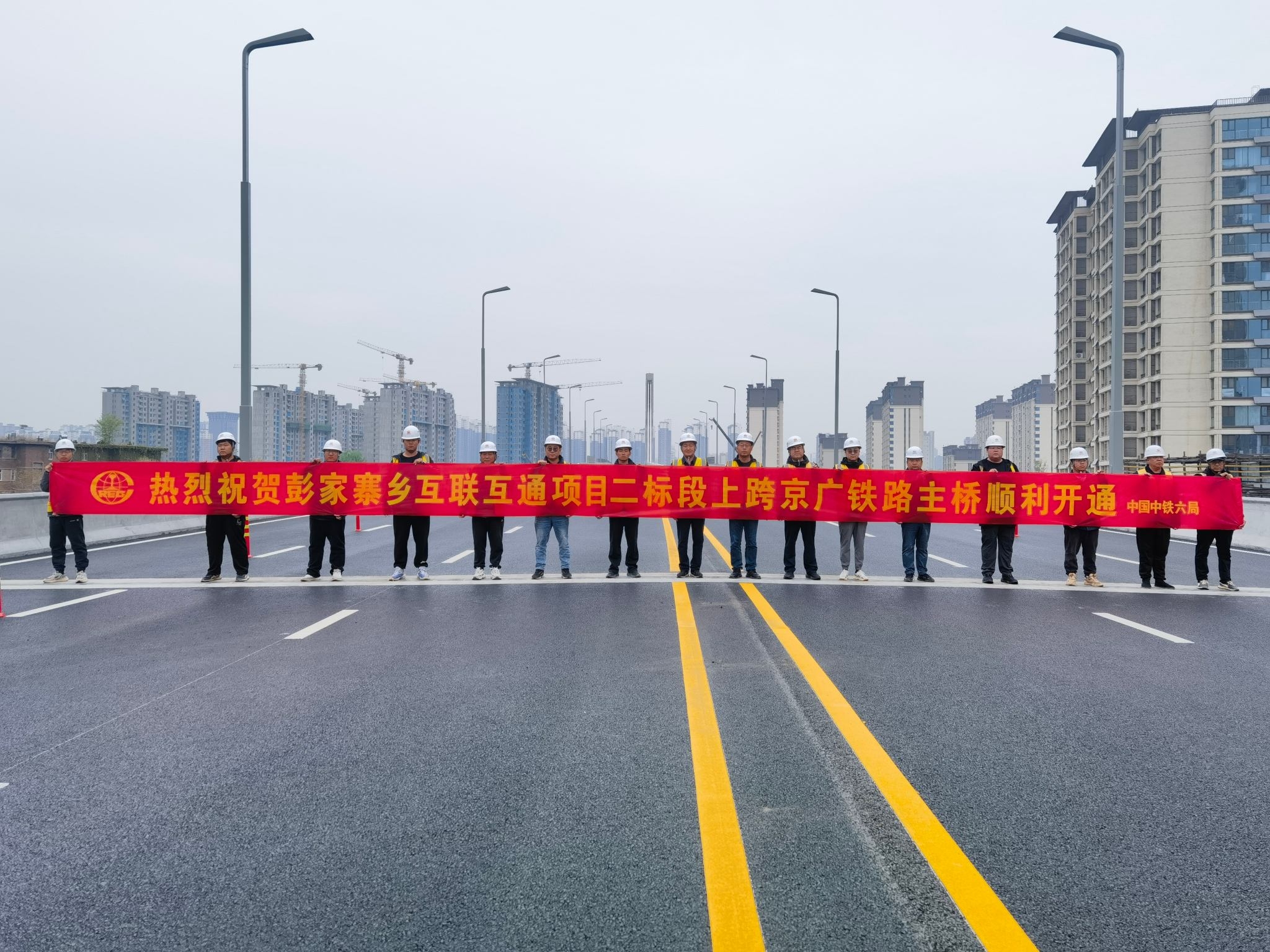 北仓路跨京广铁路立交桥是我国首座单索面矮塔曲面菱形塔身斜拉桥,是彭家寨乡互联互通项目核心工程。桥梁全长944米,主桥宽29.5米,设双向六车道主路、双向四车道辅路。施工过程中,项目团队攻克涉铁施工精度高、铁路运营“零干扰”等难题,实现1.5万吨桥体在31分钟铁路“天窗”期内完成转体61度精准对接,未影响京广铁路日均134对列车正常通行,并解决了原有下穿通道汛期积水容易中断交通的问题。