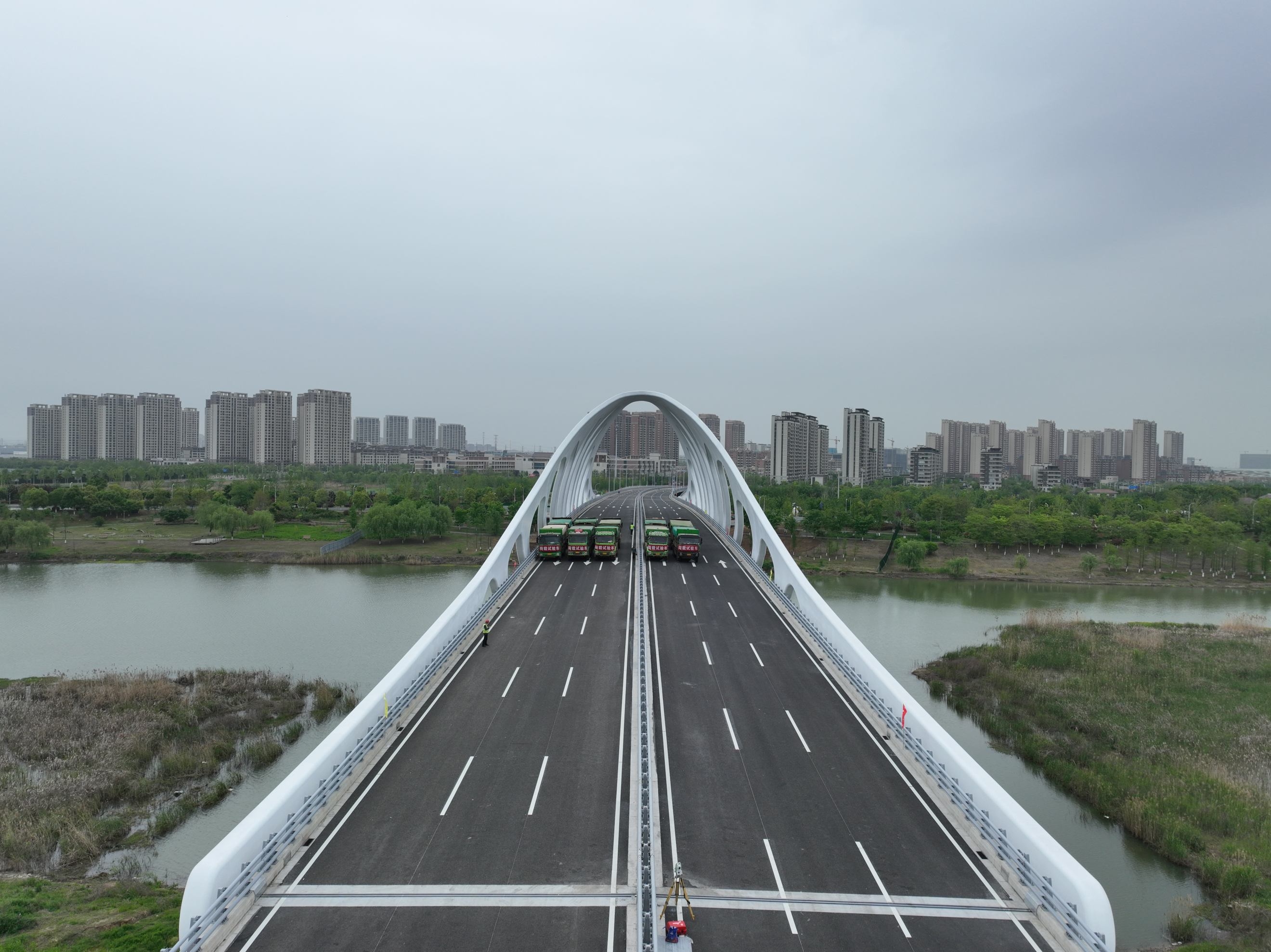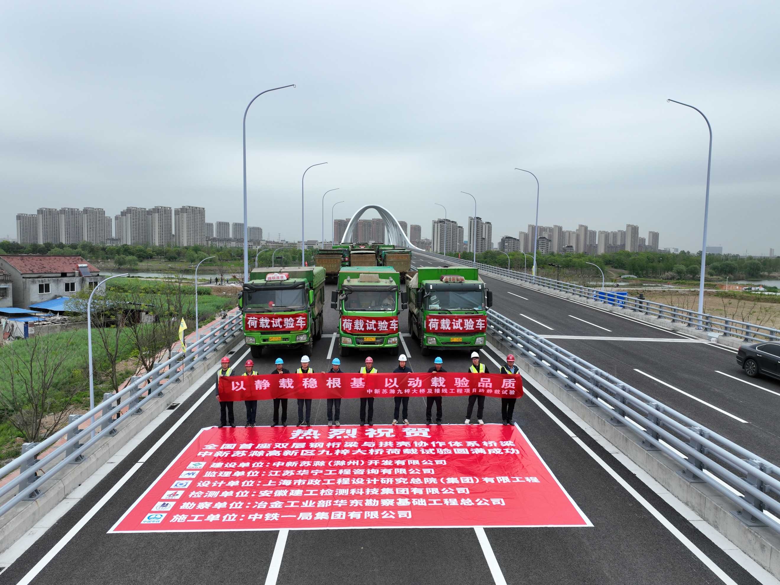九梓大桥位于安徽省滁州市中新苏滁产业园,南北向跨越清流河,全长1500米,由路基段、钢结构主桥和现浇梁桥等部分组成。其中,主桥长260米,共设4跨,分上下两层,分别为机动车道与非机动车道。拱壳设计以“荷花”为造型,取“盛世荷韵”之意。建成后将成为当地标志性桥梁,对加强产城融合及缓解清流河现有桥梁通行压力具有重要意义。