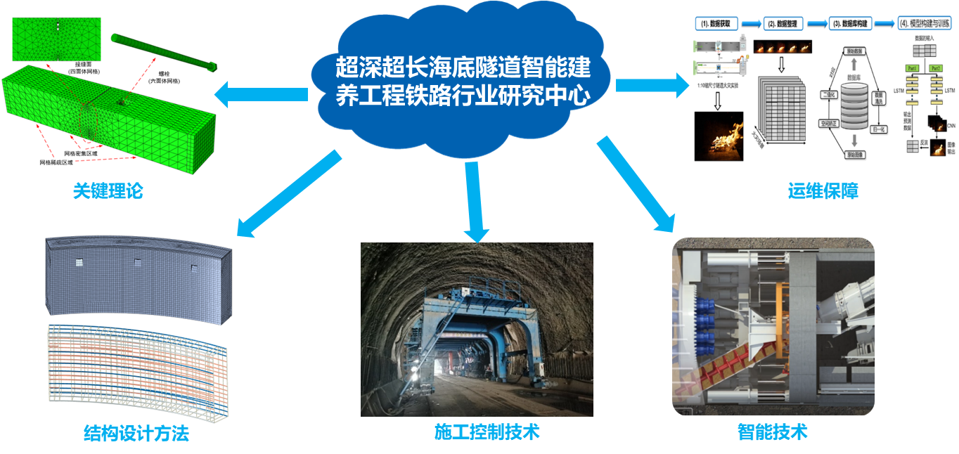 中铁六院联合中铁隧道局、西南交通大学共同建设成立铁路行业工程研究中心(以下简称“中心”),形成了“产学研用”全产业链合作模式,构筑起国际一流的科研平台,成为汇聚顶尖人才、引领学科融合、驱动产业变革的核心引擎。中心立足铁路行业发展重大需求,致力于开展隧道工程前沿基础理论与核心技术的系统性研究,聚焦极端复杂地质条件下深地隧道结构设计理论与创新体系、智能建造与控制、工程耐久性与运维保障等方向,旨在突破现有技术瓶颈,形成具有国际领先水平的隧道工程核心技术体系。