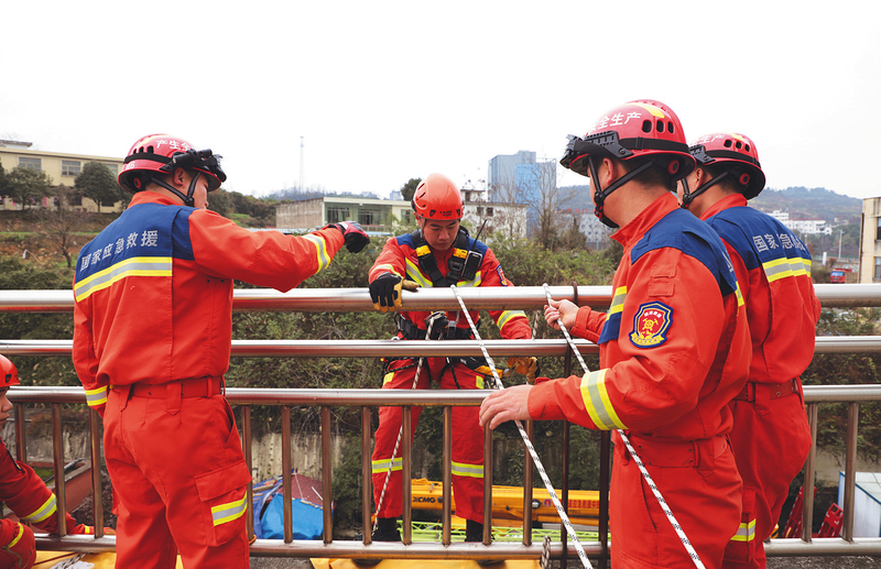 1月8日,国家隧道应急救援中铁五局贵阳队开展绳索救援专项演练,模拟人员高空坠落导致腿部骨折救援处置,强化队员绳索救援技术,提升队伍应对高空、山岳救援任务能力。 付艳平 摄