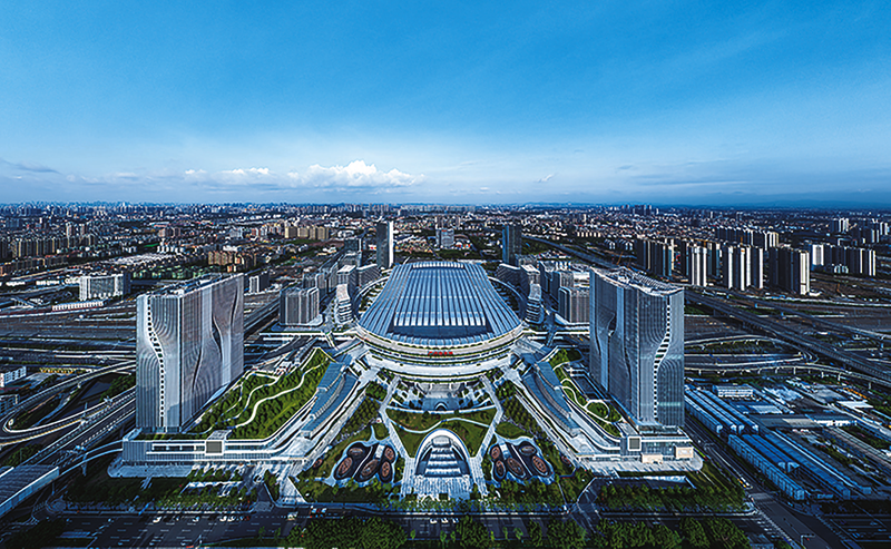 The Guangzhou Baiyun Station TOD Integrated Transport Hub and its associated facilities have a total construction area exceeding 1.5 million square meters. The project includes Guangzhou Baiyun Station, the north and south railway decks, north and south breathing plazas, east and west plazas, four traffic cores, and four super high-rise towers. Among them, Baiyun Station, the breathing plazas, the northwest traffic core, and the east-west plazas were all put into operation on December 26, 2023, coinciding with the opening of Baiyun Station.