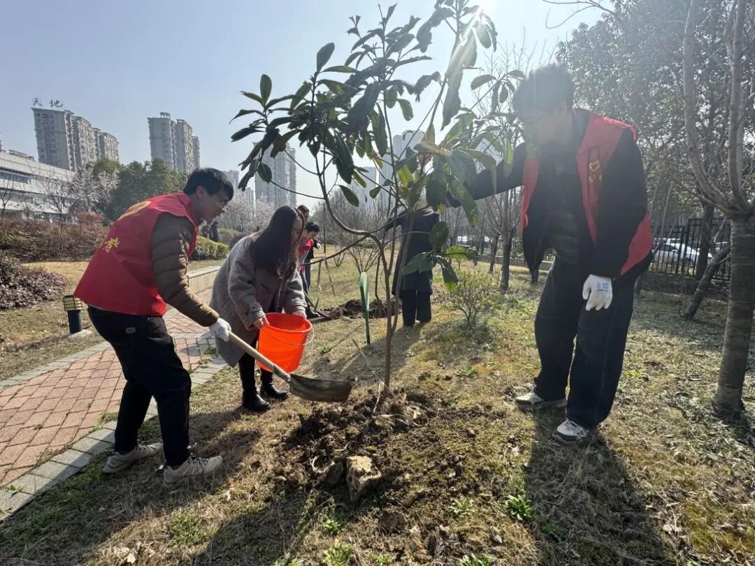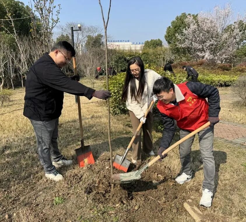 公司党委副书记、总经理韩昌银带领规划院广大团员青年们一同来到中铁设计广场主楼前的景观绿化带,挥锹铲土、扶苗填坑、提水浇灌,共同种下了象征希望与生机的樱花树、月季和枇杷树苗10余棵。植树现场,大家分工协作,配合默契,干劲十足,一派热火朝天的劳动景象。新栽种的树苗迎风挺立,为初春的办公园区增添了一抹新绿,也承载着大家对建设美好生态环境的共同期盼。