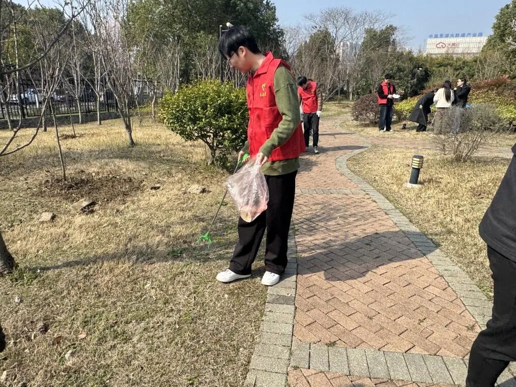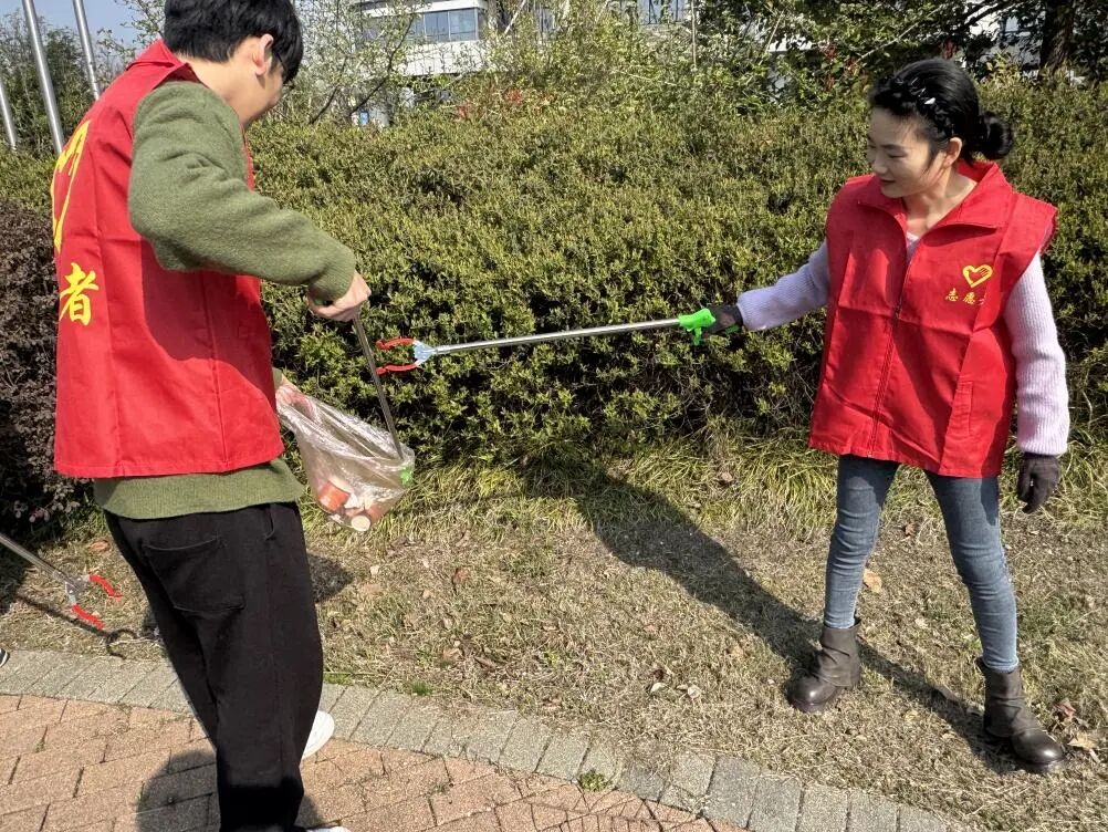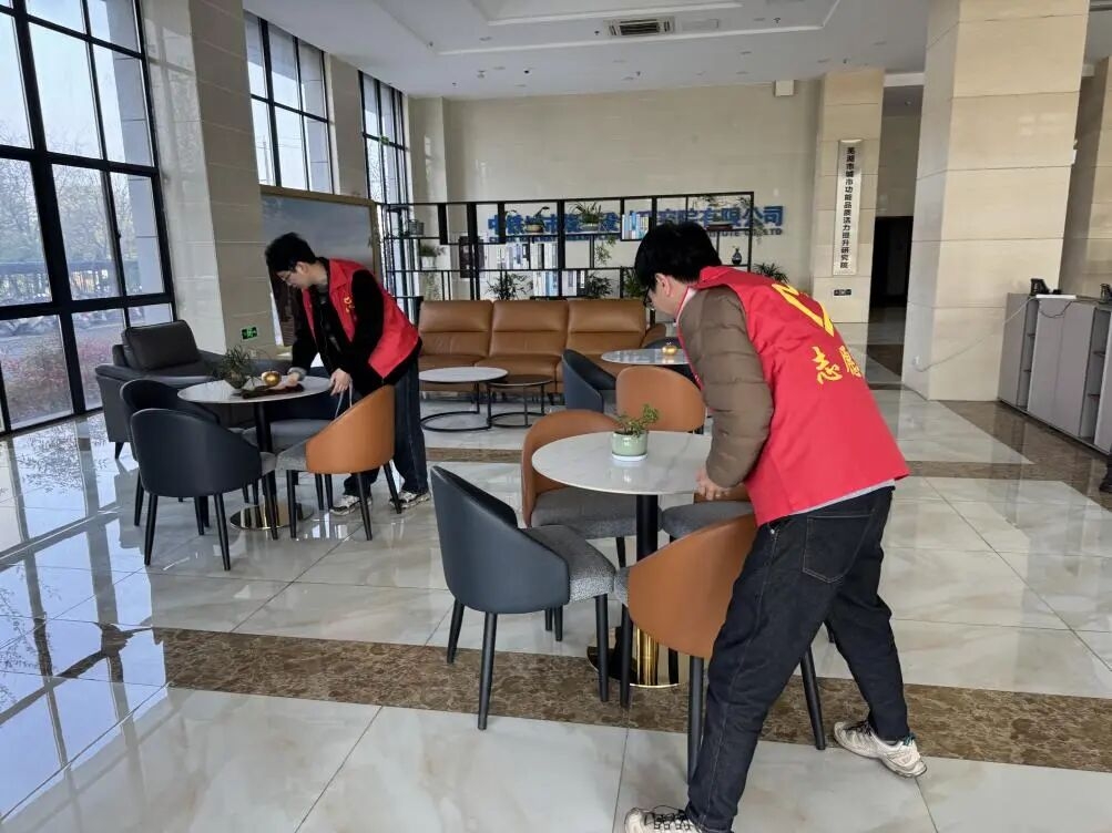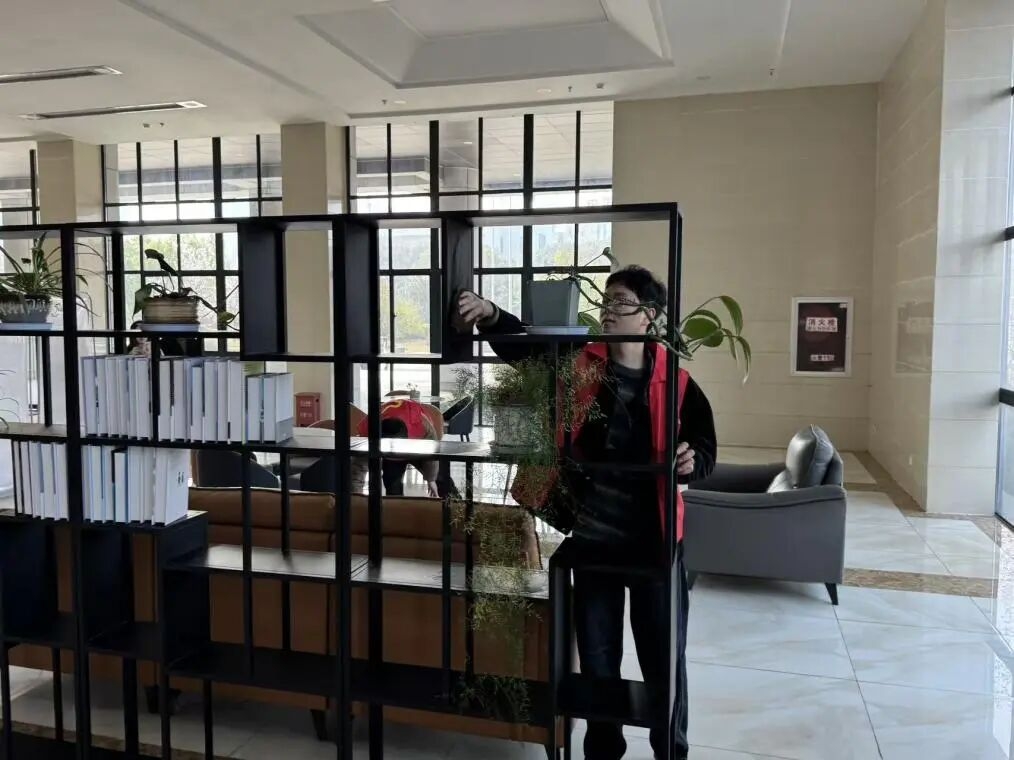 植树活动结束后,青年志愿者们热情不减,迅速转换“战场”,投入到办公区域的清洁美化志愿服务中。他们手持垃圾钳、抹布等工具,细致地清理广场及绿化带内的纸屑、烟头等杂物,认真擦拭一楼接待大厅的桌椅、书架等公共设施。大家不怕脏、不怕累,不放过任何一个卫生死角,用实际行动营造了干净整洁、舒适优美的办公环境,展现了新时代青年良好的精神风貌和奉献担当。