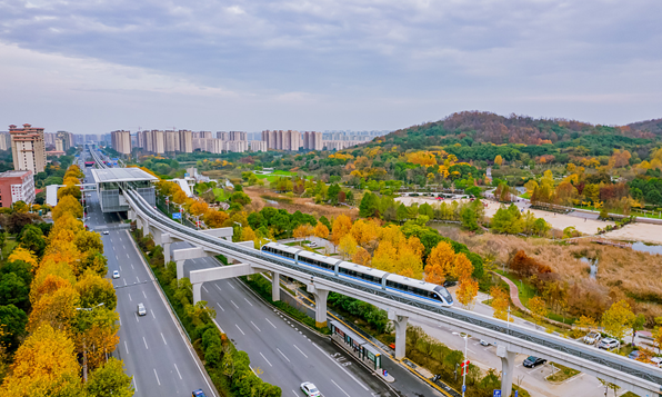 芜湖市轨道交通1号线、2号线一期于2021年10月开通运营,轨道制式为跨坐式单轨。1号线北起保顺路站,线路沿经开区、镜湖区、弋江区重要主次干路布设,向南终点至白马山站,线路全长30km。2 号线一期工程东起万春湖路站,西至北京路站,线路全长16km。由中铁城市规划院设计完成的轨道交通1、2号线沿线道路、绿化改造工程全长约46km,与轨道交通主体工程一同完工。