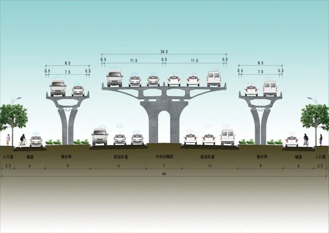 长江路高架断面图