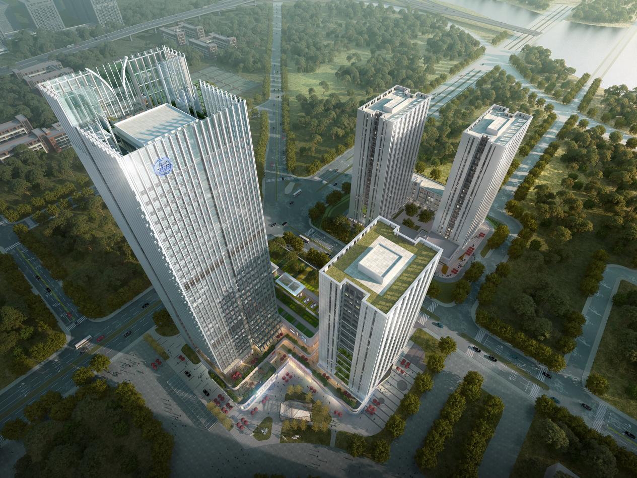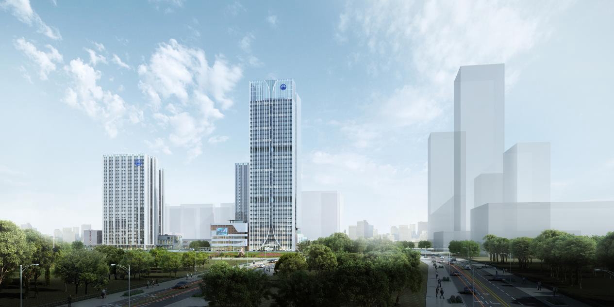 中铁吉林总部基地,项目位于吉林省长春市南部新城核心区,总建筑面积约21万平方米。其主塔为金核四塔的东北塔,项目分两个地块,A地块主楼为170米的超高层总部,未来将成为中铁吉林区域的总部基地,辅楼为100米高的公寓,裙房为商业,B地块由两栋100米高的公寓楼组成。