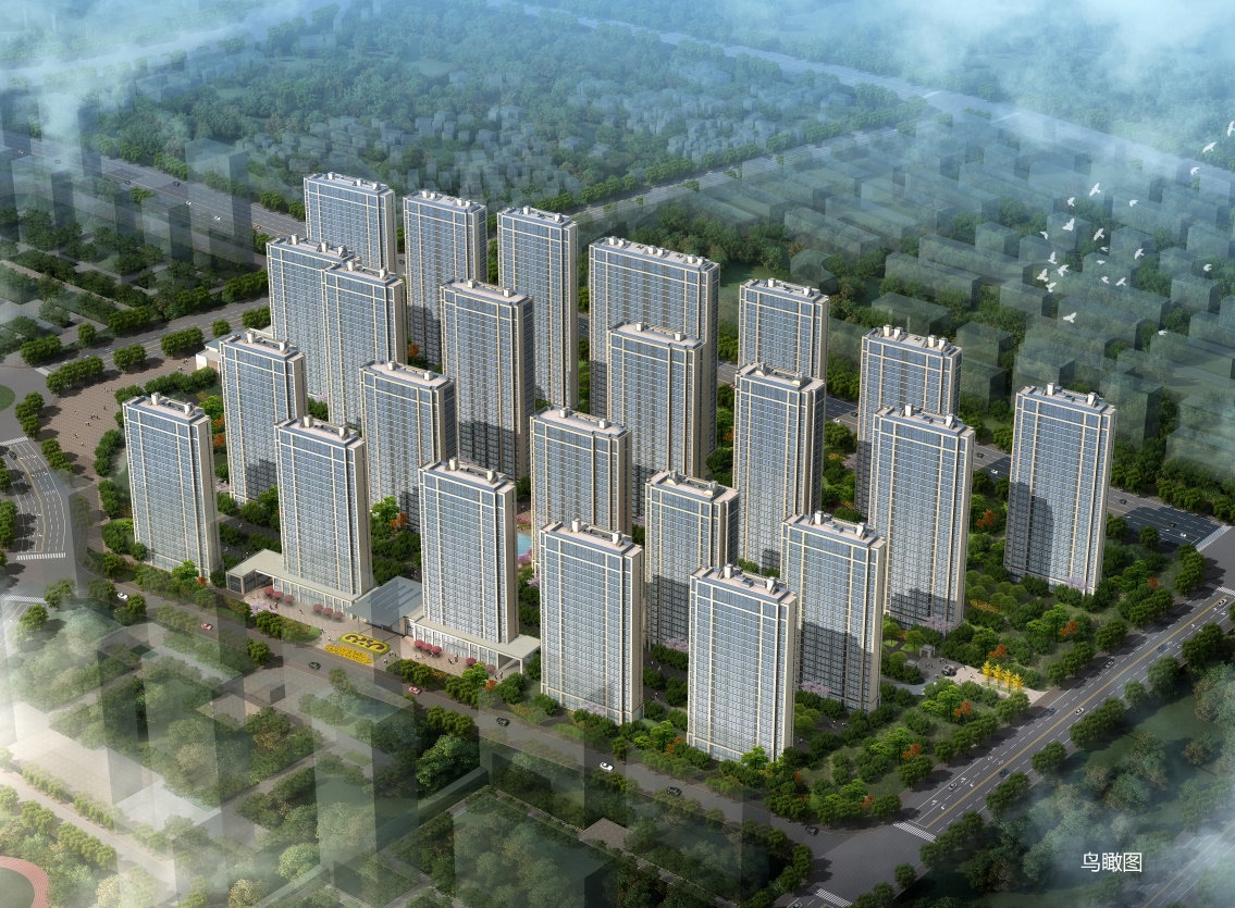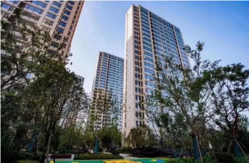 小区由北往南建筑高度依次为32层、30层、24层,呈现北高南低,沿利民路中间高两侧低,平缓下降的空间态势。高层住宅外立面采用真石漆外墙涂料,底部2层使用石材幕墙,商业等低层建筑全部采用石材外墙。
