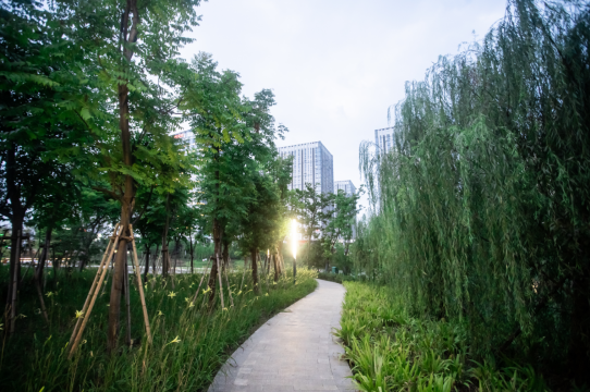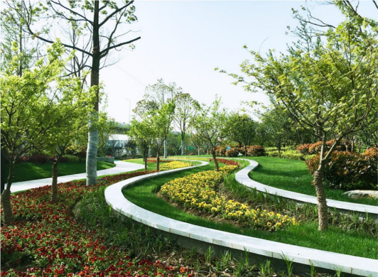 绿化以动态的演练为核心,体现出从乡村到城市、自然到现代的变化,