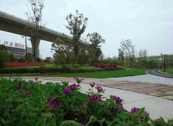 在植物手法上打破常规设计,把群落组合与盆景化手法运用于桥下空间,成为一次创新之举。