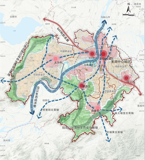 项目内容:通过开展区域协同与发展战略、城乡统筹与新型城镇化发展等十四个专题研究,深入分析城市发展规律;基于多元数据开展双评估、双评价,识别城市特征与问题;面向高质量发展要求,打造安徽省副中心城市、长江经济带具有重要影响力的先进制造业基地、现代化滨江大城市;全域统筹构建“一江两屏、南北两圩、一主两副、一心四极”的国土空间总体格局。