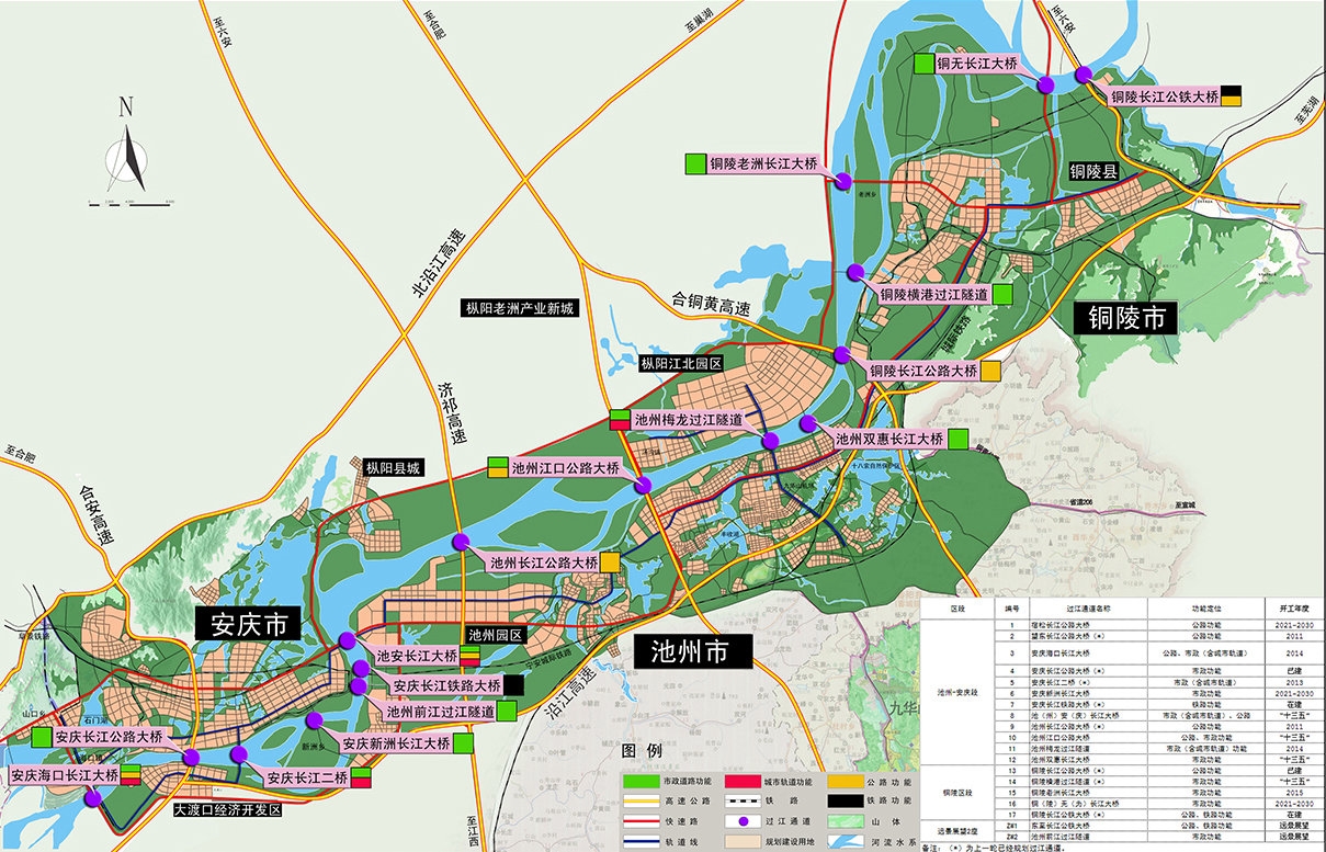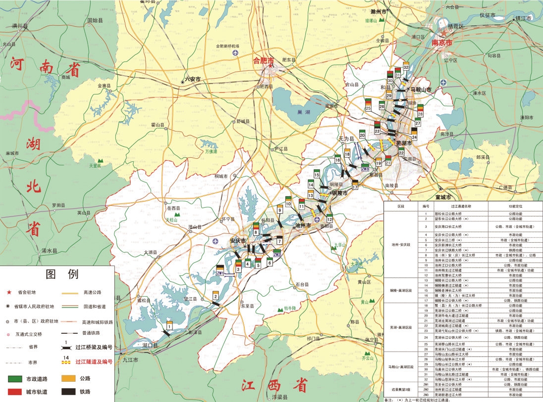 该项目以可持续发展为导向,促进皖江两岸城市联动发展,统筹皖江岸线资源的综合利用,构建功能完善、布局合理、畅通高效的过江格局,以构建现代化的综合交通运输体系。